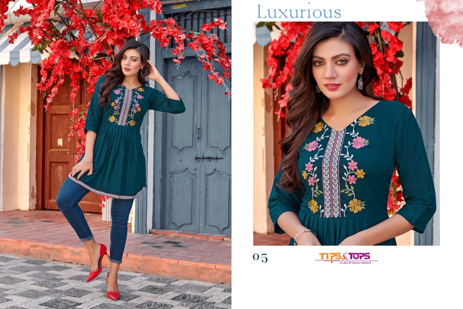 Bubbly Vol-5 Tops By Tips & Tops Designer With Embroidery Work Rayon Tops Are Available At Wholesale Price