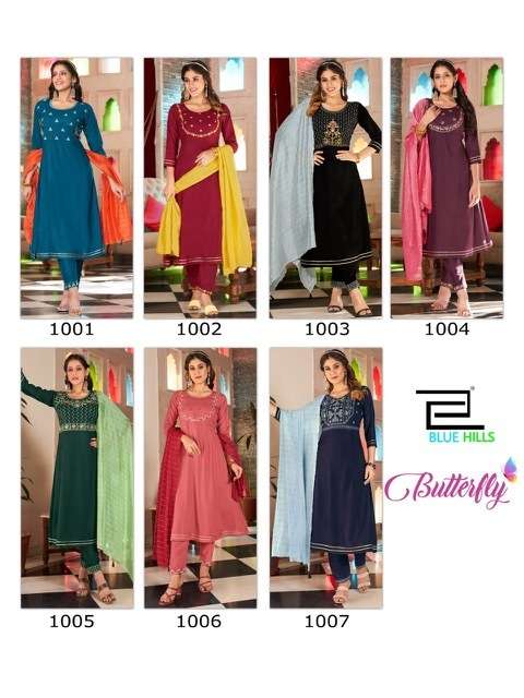 BUTTERFLY GOEN BY BLUE HILLS DESIGNER WITH WORK RAYON GOWN WITH DUPATTA ARE AVAILABLE AT WHOLESALE PRICE