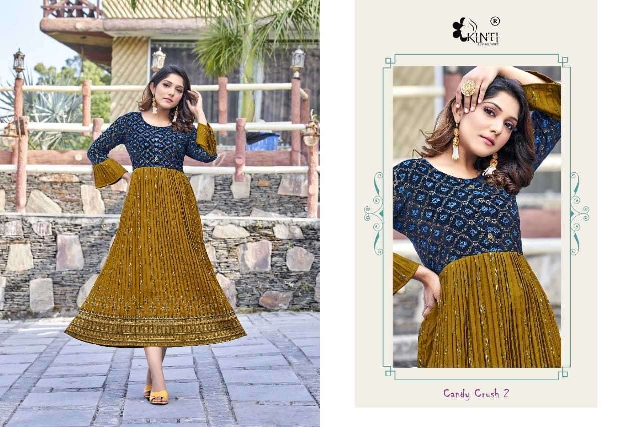 CANDY CRUSH VOL-2 KURTI BY KINTI DESIGNER WITH FOIL PRINTED CHINON SILK KURTIS ARE AVAILABLE AT WHOLESALE PRICE