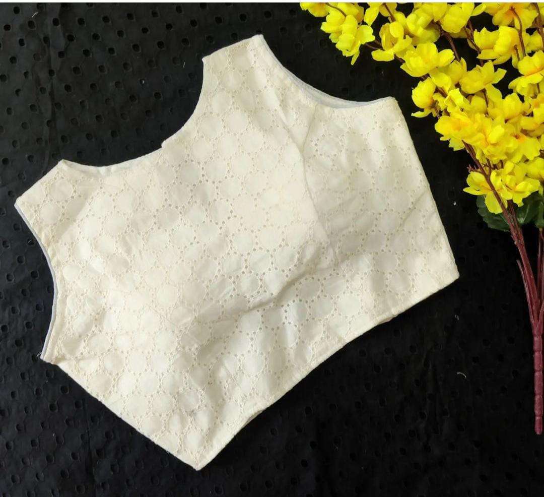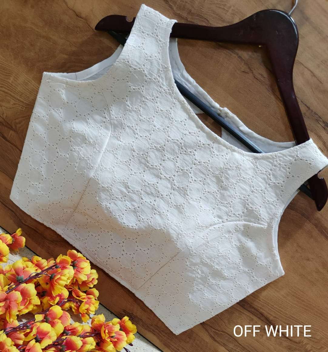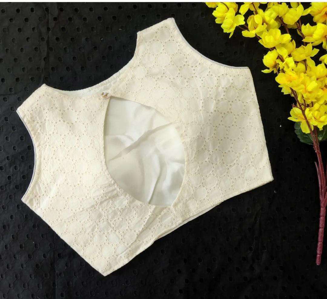 Boat Neck Blouse In Hakoba Fabric with Trendy Back Pattern