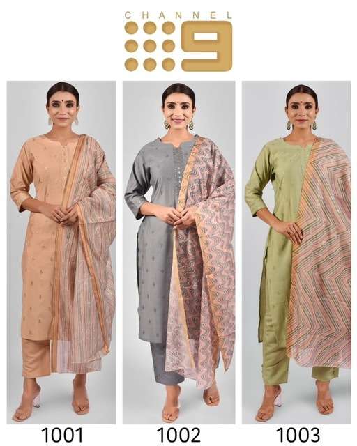 CHANNEL 9 DESIGNER WITH WORK VISCOSE SILK KURTI WITH BOTTOM AND DUPATTA ARE AVAILABLE AT WHOLESALE PRICE