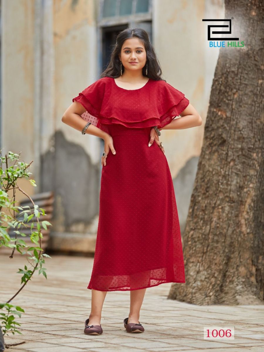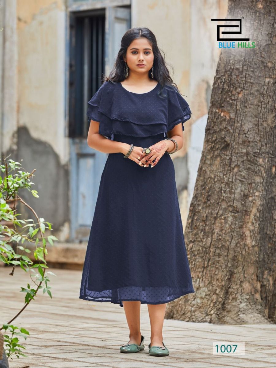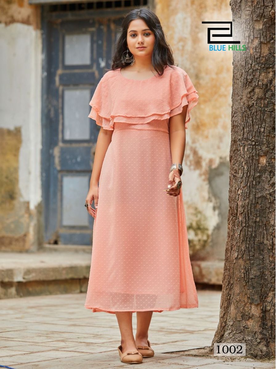 Charming Kurti By Blue Hills Designer Party Wear Georgette Long Kurtis Are Available At Wholesale Price