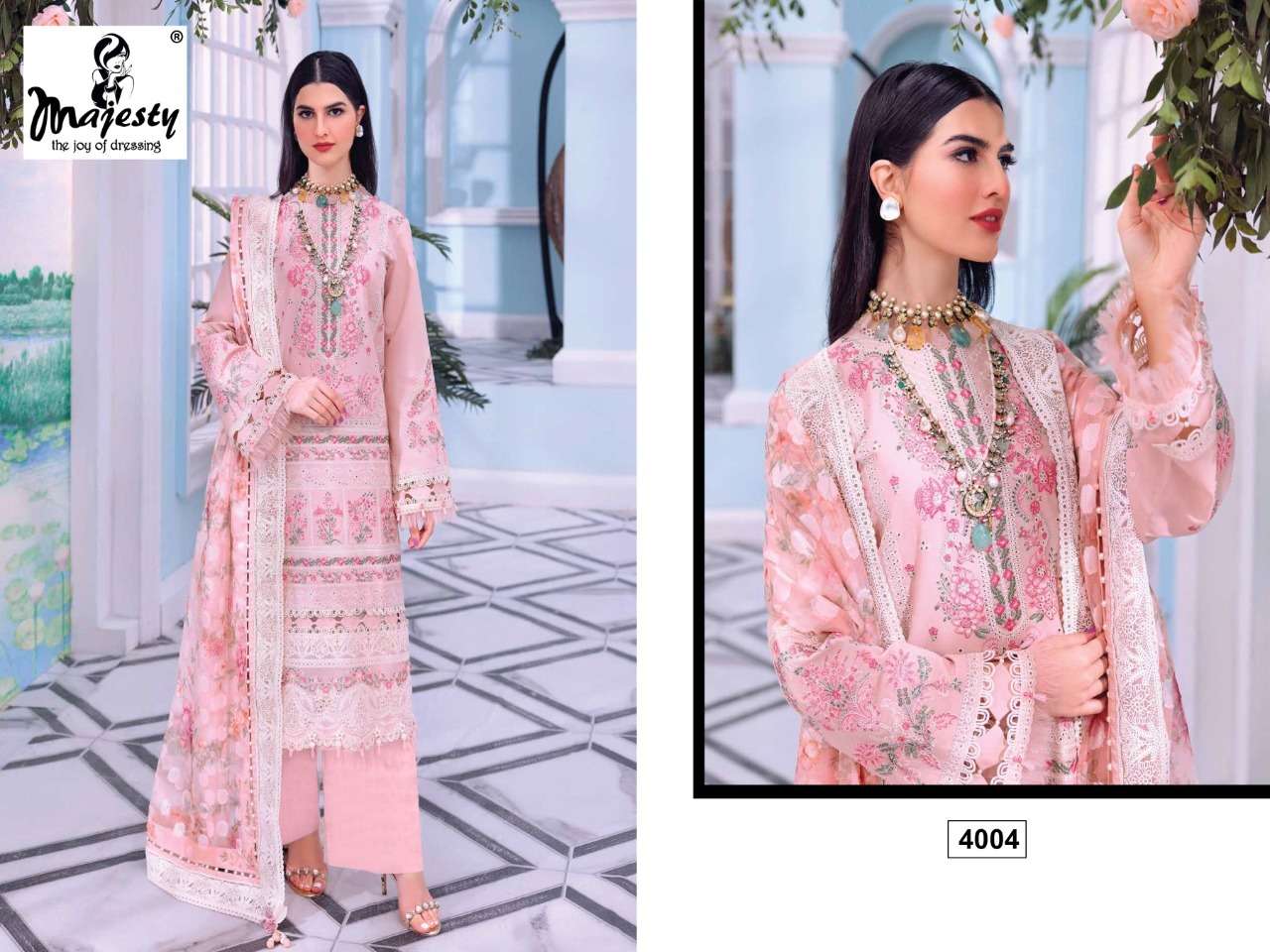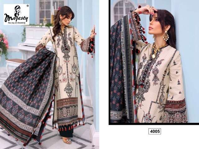 CHEVRON LAWN VOL-2 BY MAJESTY DESIGNER WITH PRINTED AND WORK COTTON PAKISTANI STYLE SUITS ARE AVAILABLE AT WHOLESALE PRICE