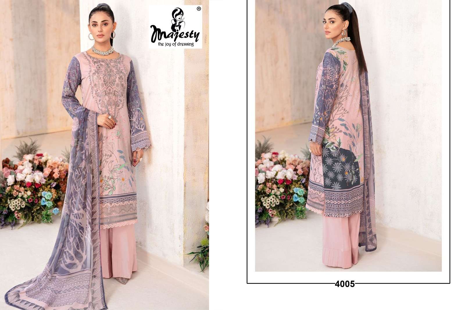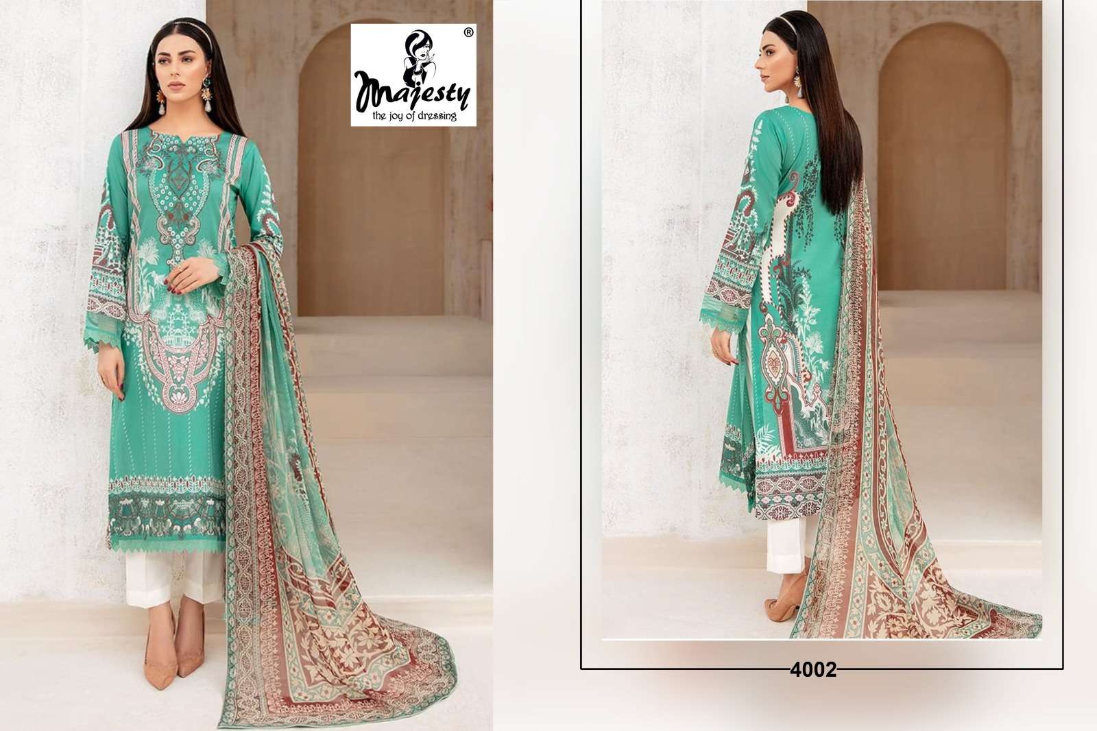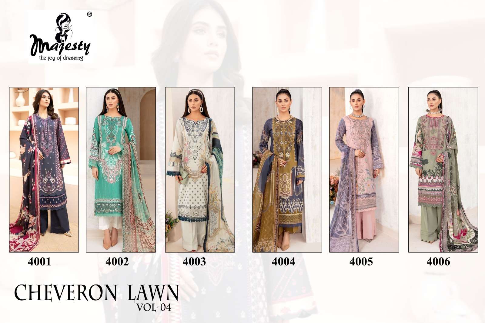 CHEVRON LAWN VOL-4 BY MAJESTY DESIGNER WITH PRINTED AND WORK COTTON PAKISTANI STYLE SUITS ARE AVAILABLE AT WHOLESALE PRICE