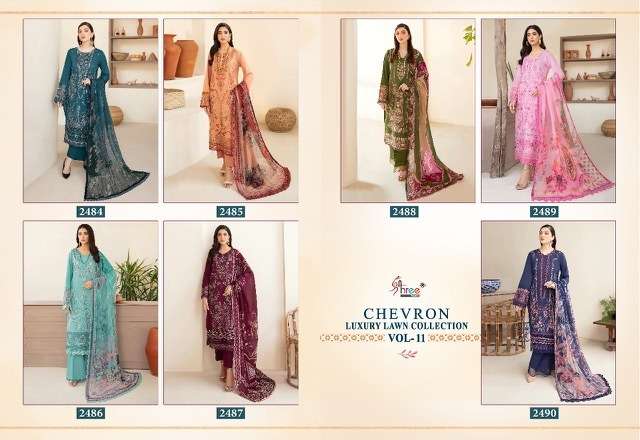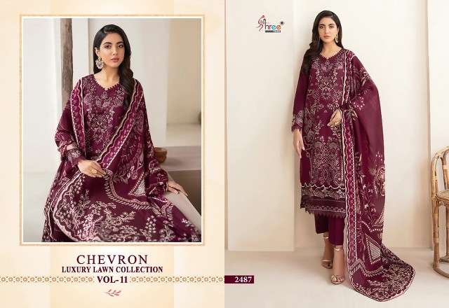 CHEVRON LUXURY LAWN COLLECTION VOL-11 BY SHREE FABS DESIGNER WITH PRINTED AND WORK PAKISTANI STYLE LAWN COTTON SUITS ARE AVAILABLE AT WHOLESALE PRICE
