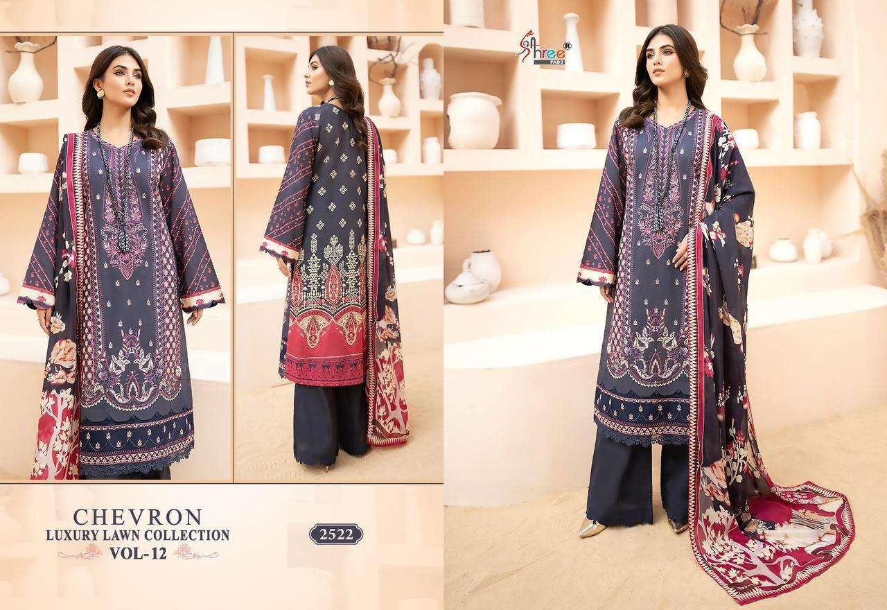 CHEVRON LUXURY LAWN COLLECTION VOL-12 BY SHREE FABS DESIGNER WITH PRINTED AND WORK PAKISTANI STYLE LAWN COTTON SUITS ARE AVAILABLE AT WHOLESALE PRICE