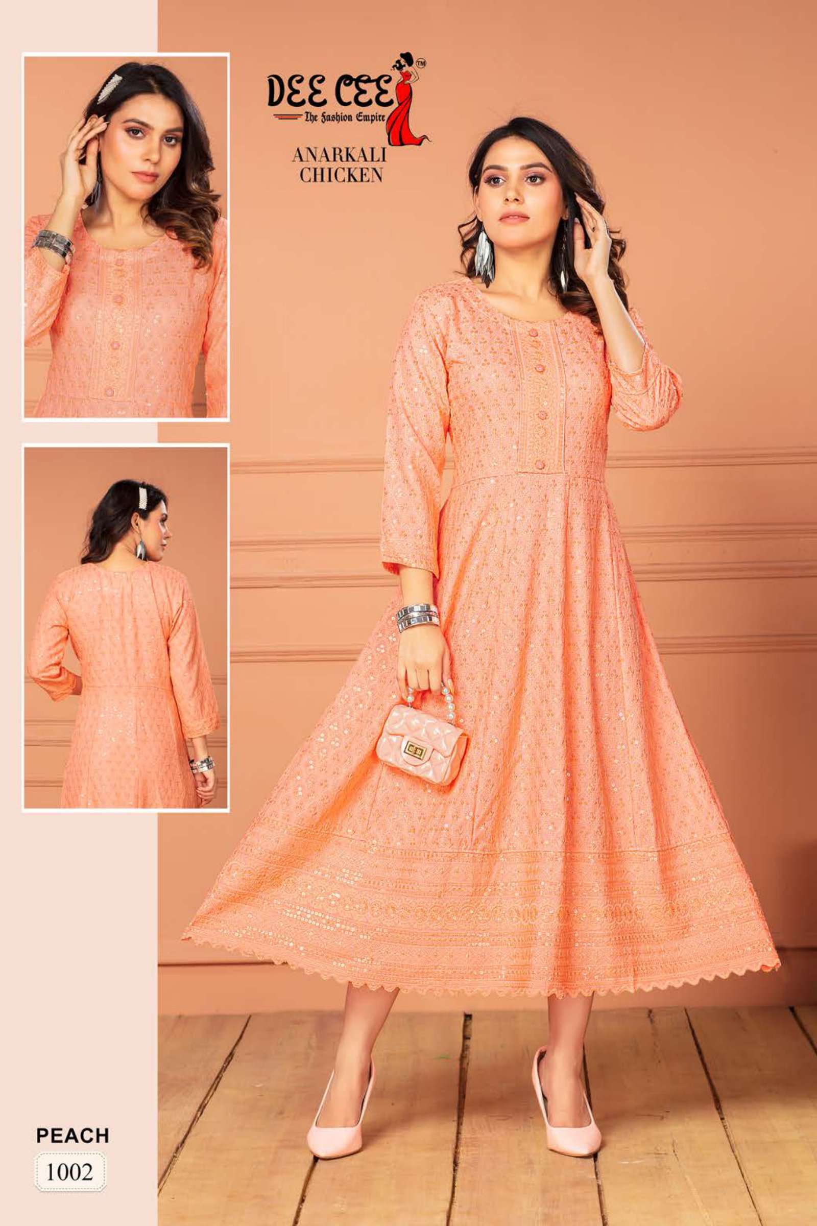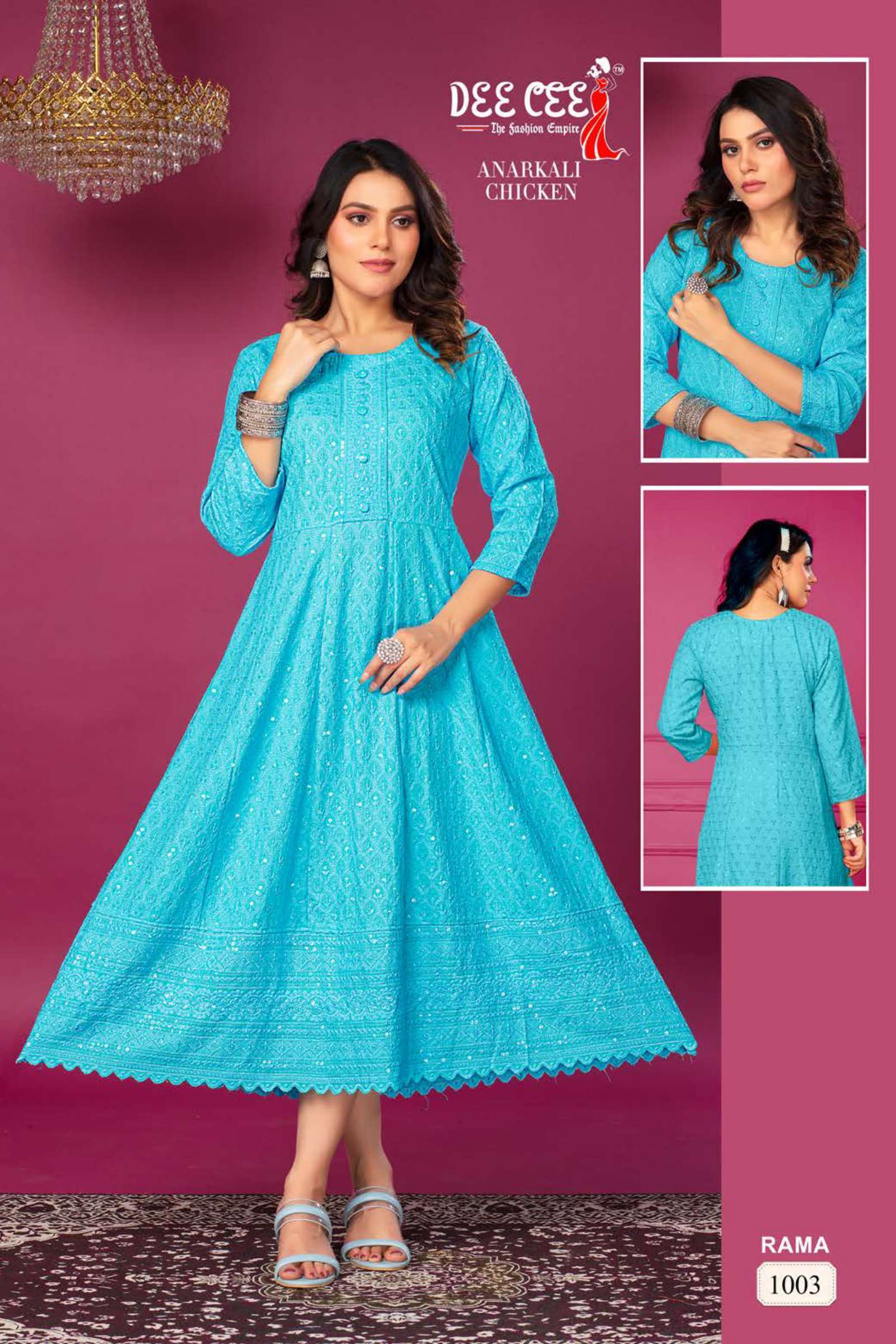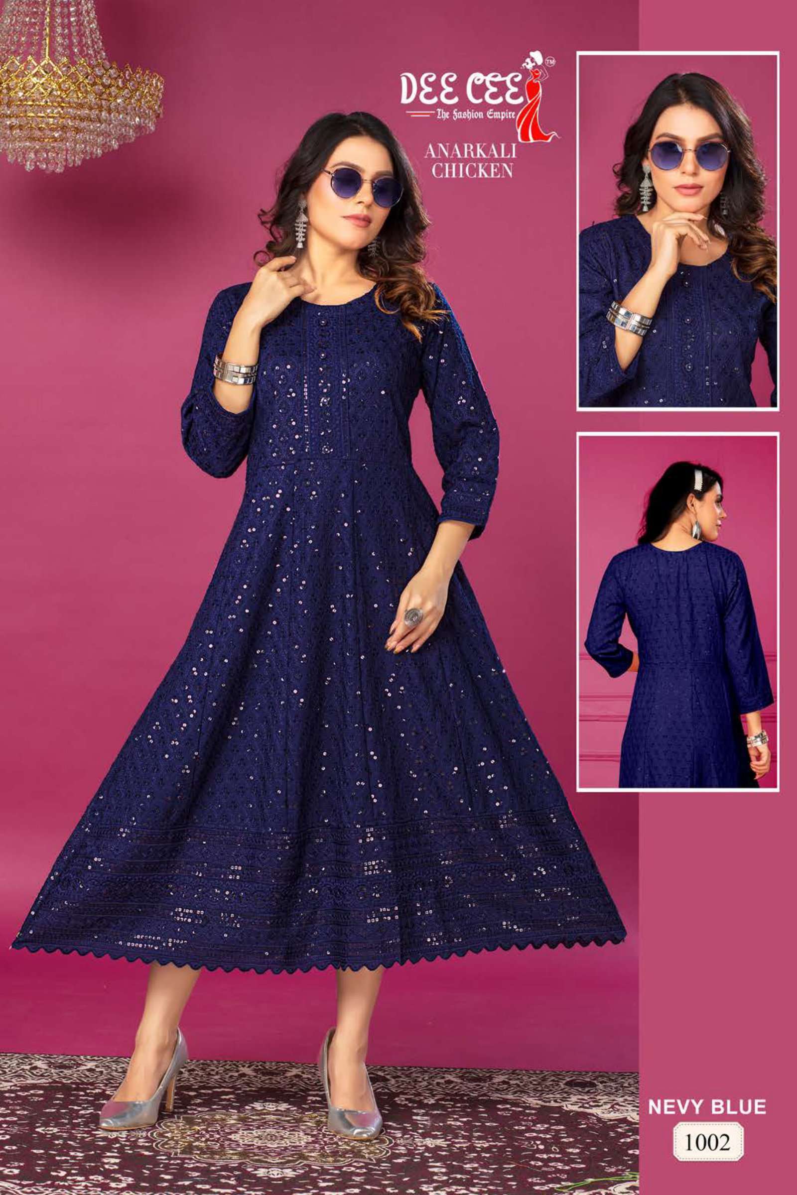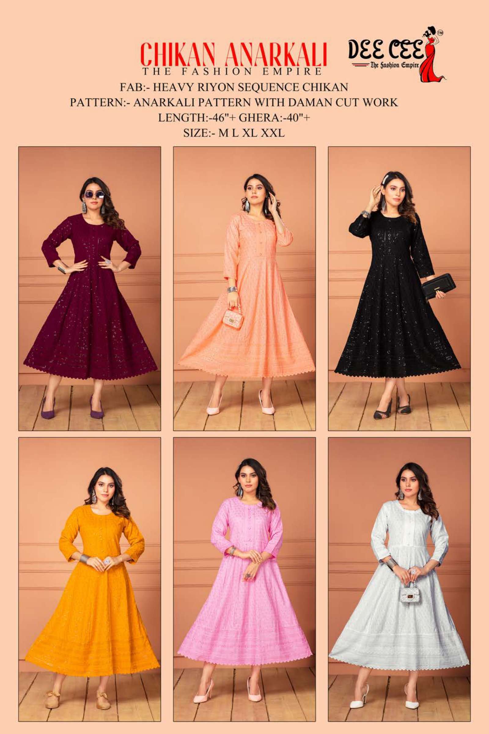 | Name: | dee cee-CHIKAN ANARKALI SERIES 1001 TO 1011 KURTI BY DEE CEE |