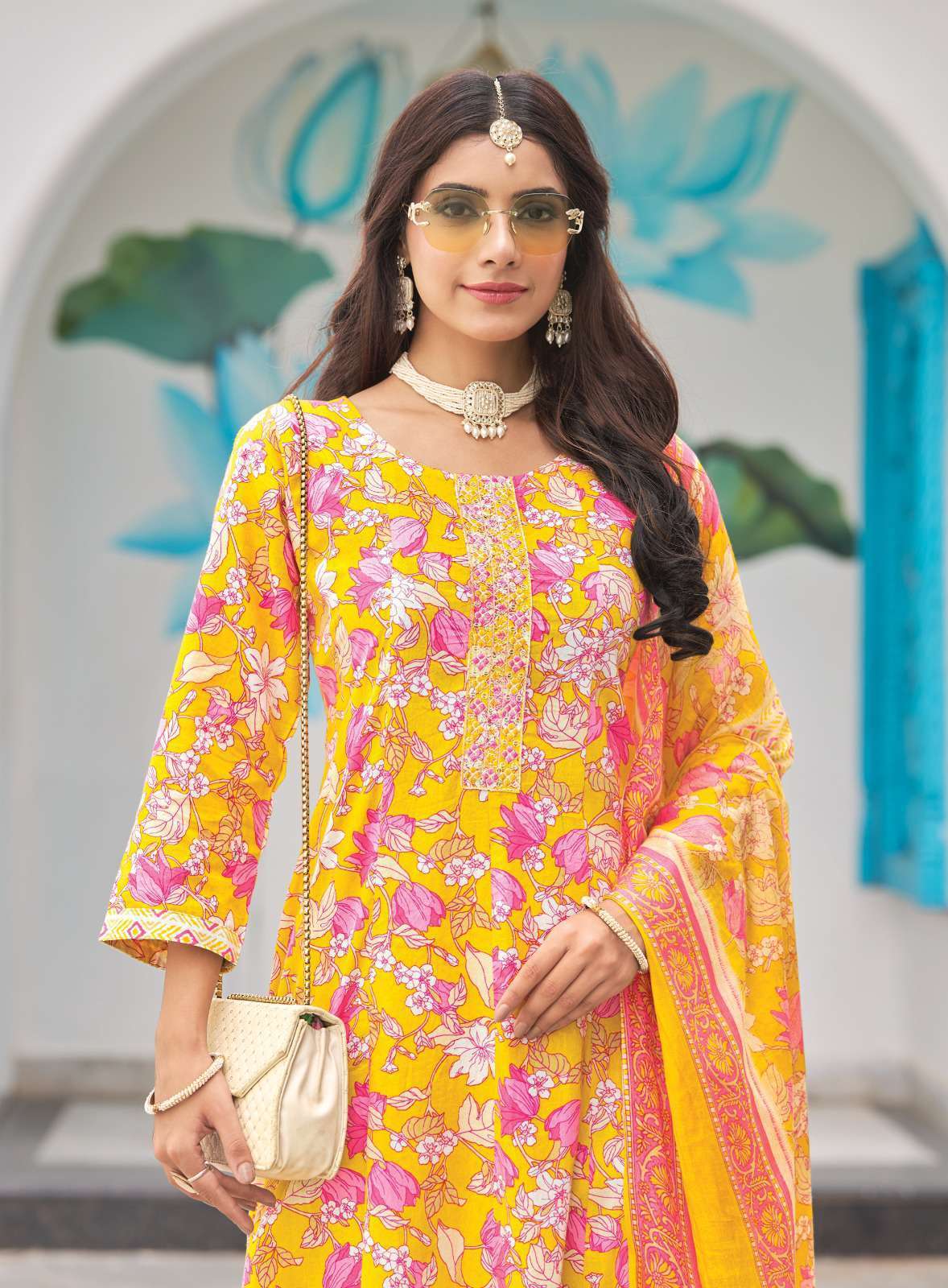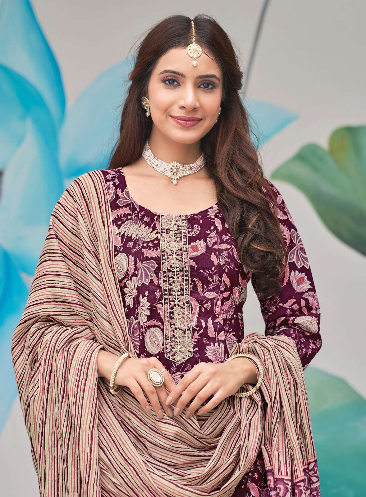 FABRIC - HEAVY PURE COTTON PRINT WITH EMBROIDERY WORK