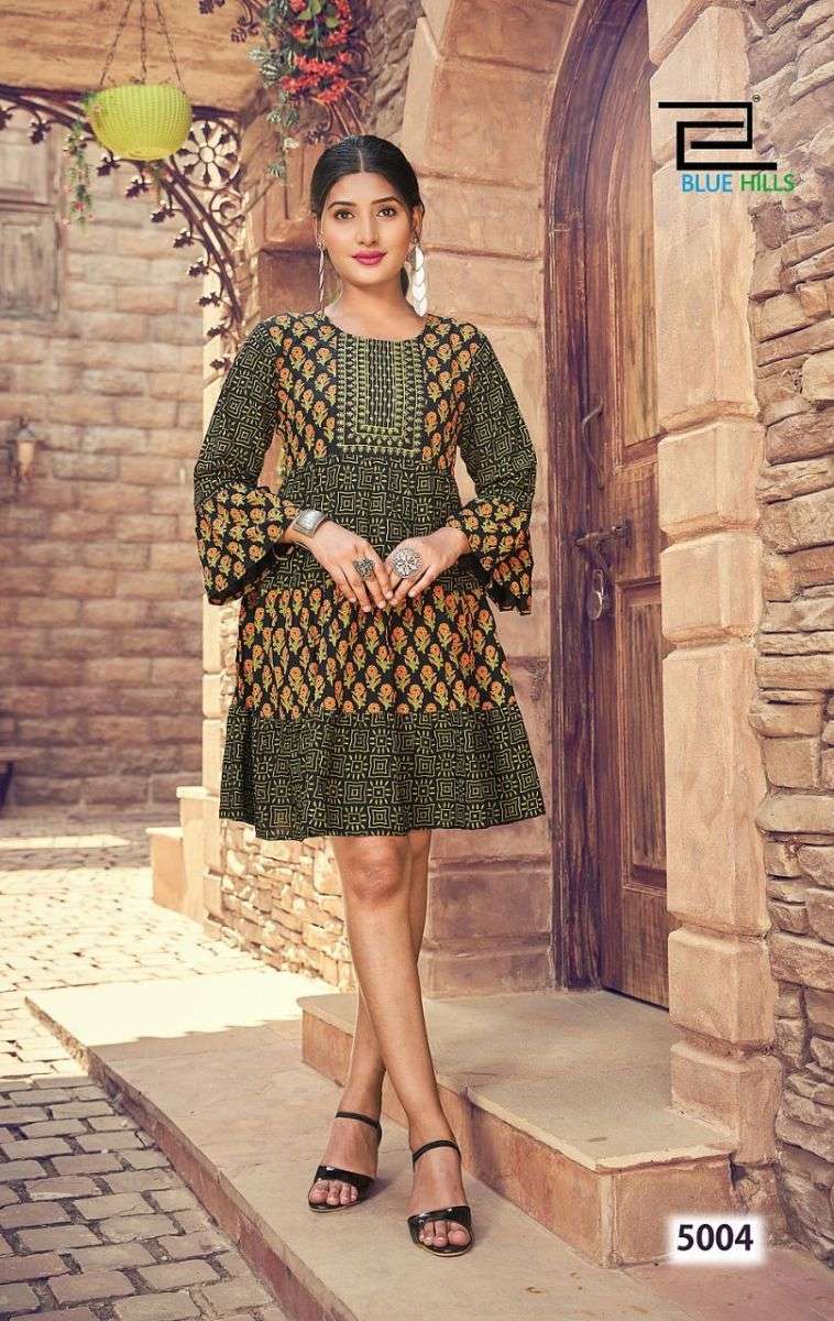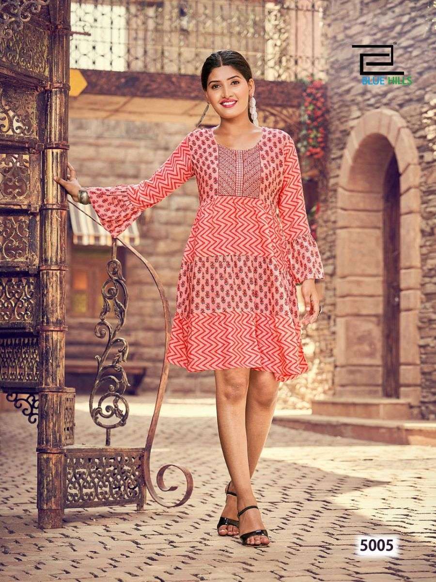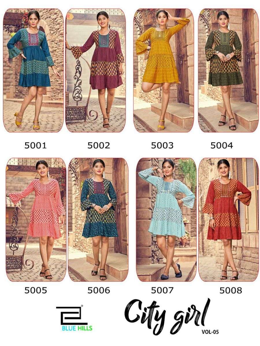CITY GIRL VOL-5 KURTI BY BLUE HILLS DESIGNER WITH PRINTED RAYON SHORT KURTIS ARE AVAILABLE AT WHOLESALE PRICE