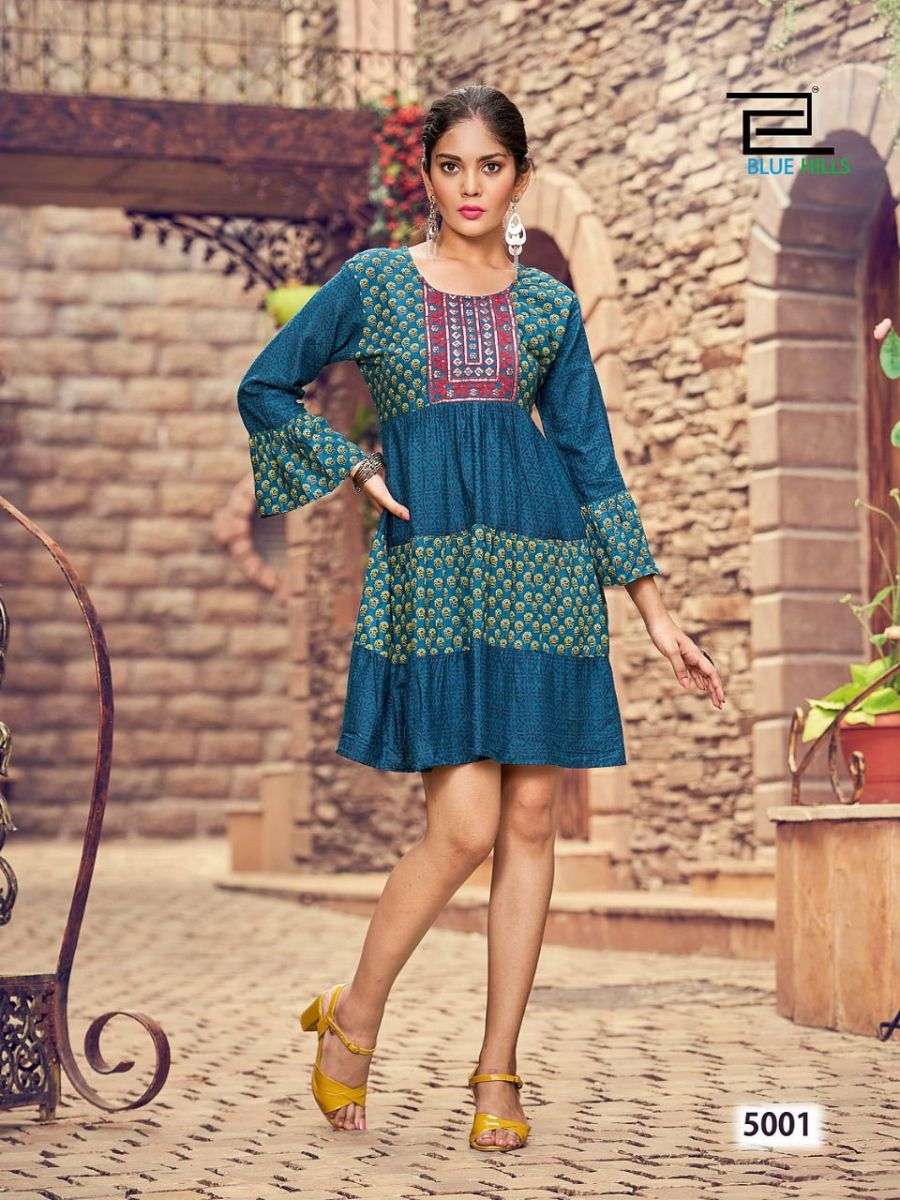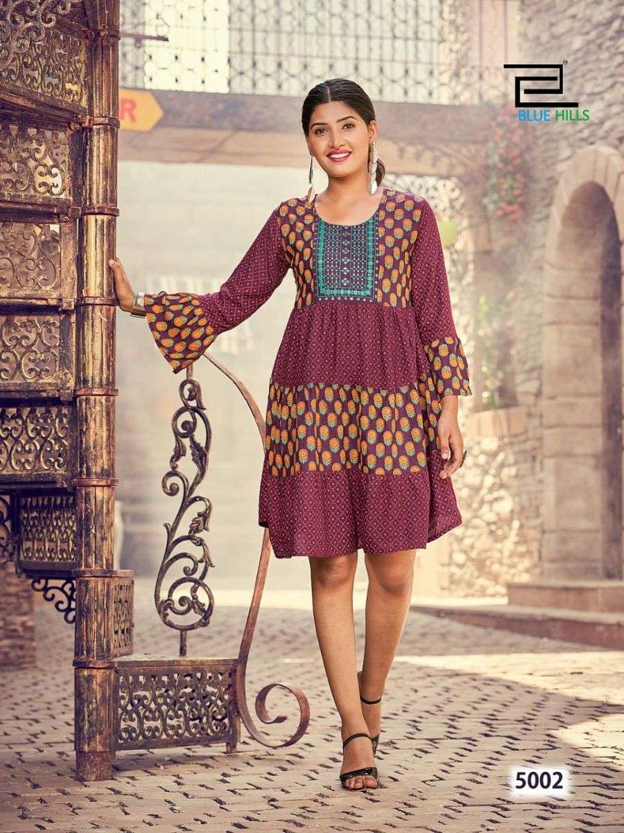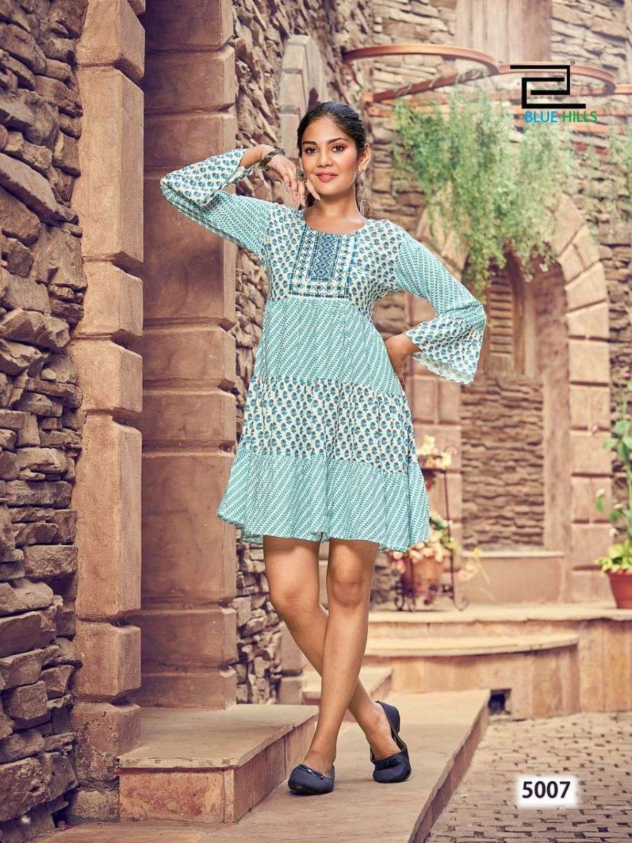 CITY GIRL VOL-5 KURTI BY BLUE HILLS DESIGNER WITH PRINTED RAYON SHORT KURTIS ARE AVAILABLE AT WHOLESALE PRICE