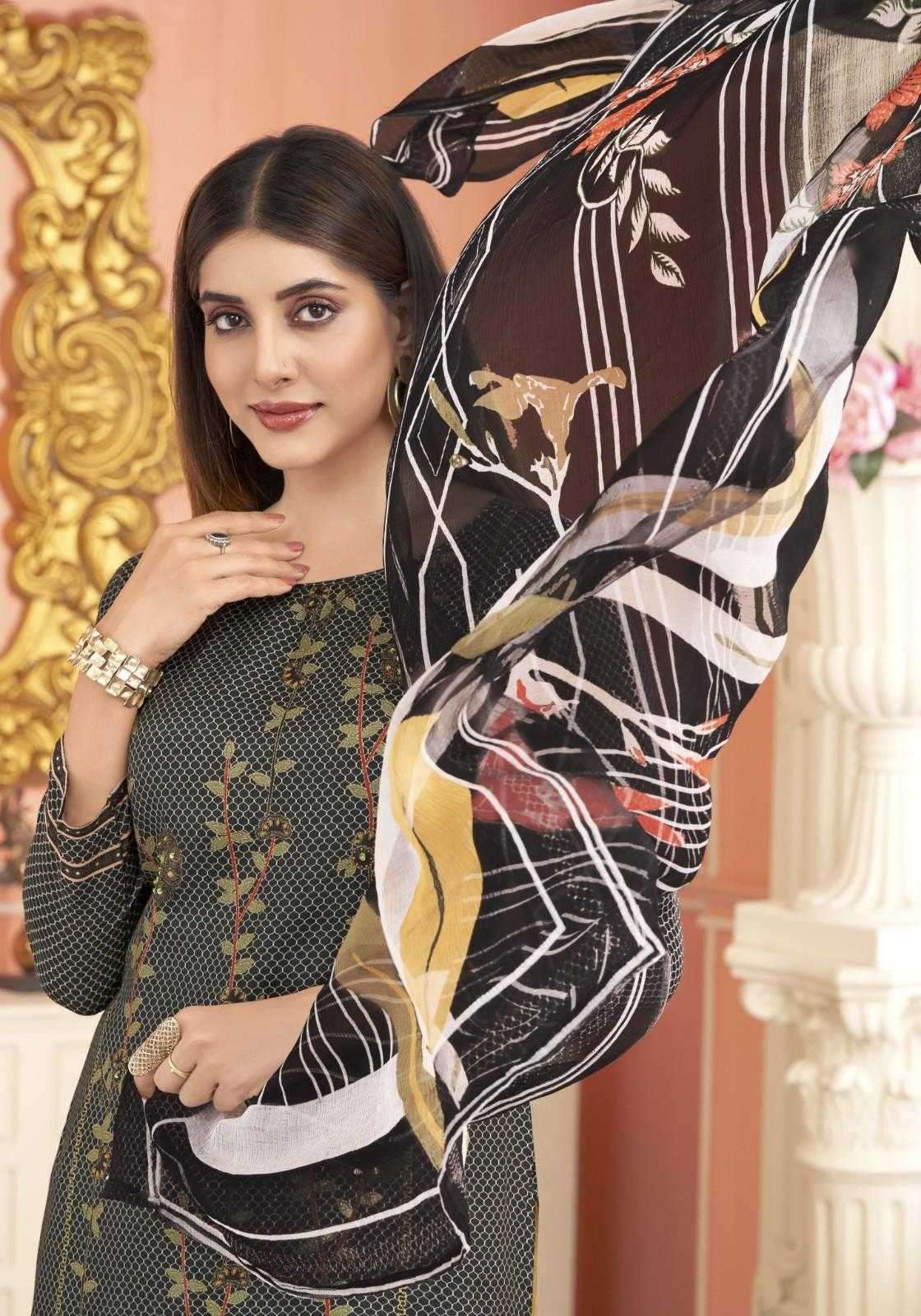 TOP - Premium Viscose Maslin Designer Digital Print With Elegant Hand Work (Cut: 2.50MTR)