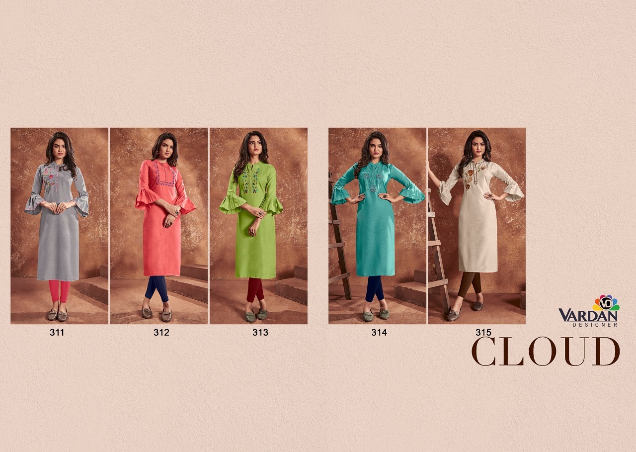 Cloud Kurti By Vardan Designer With Embroidery Work Cotton Kurtis Are Available At Wholesale Price