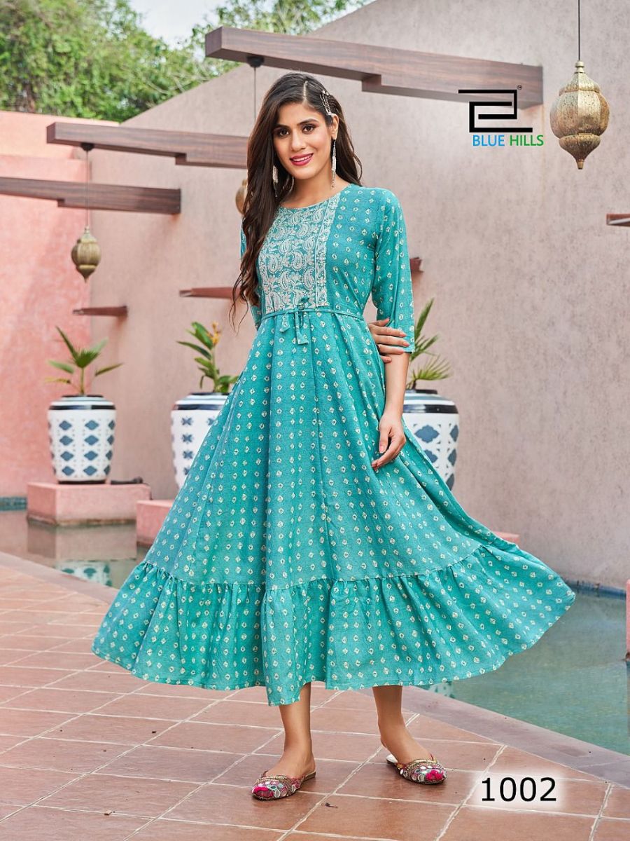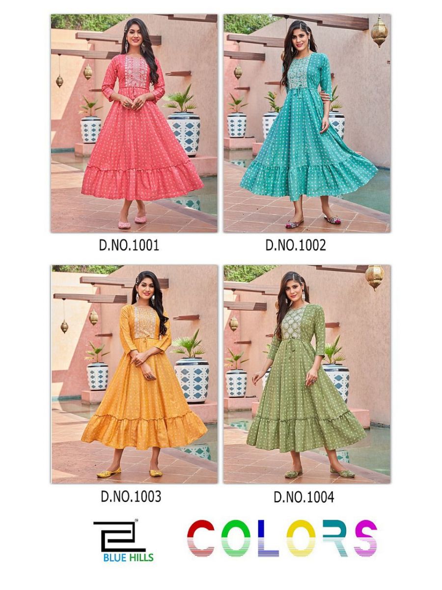 Colors Kurti By Blue Hills Designer With Printed Rayon Anarkali Kurtis Are Available At Wholesale Price