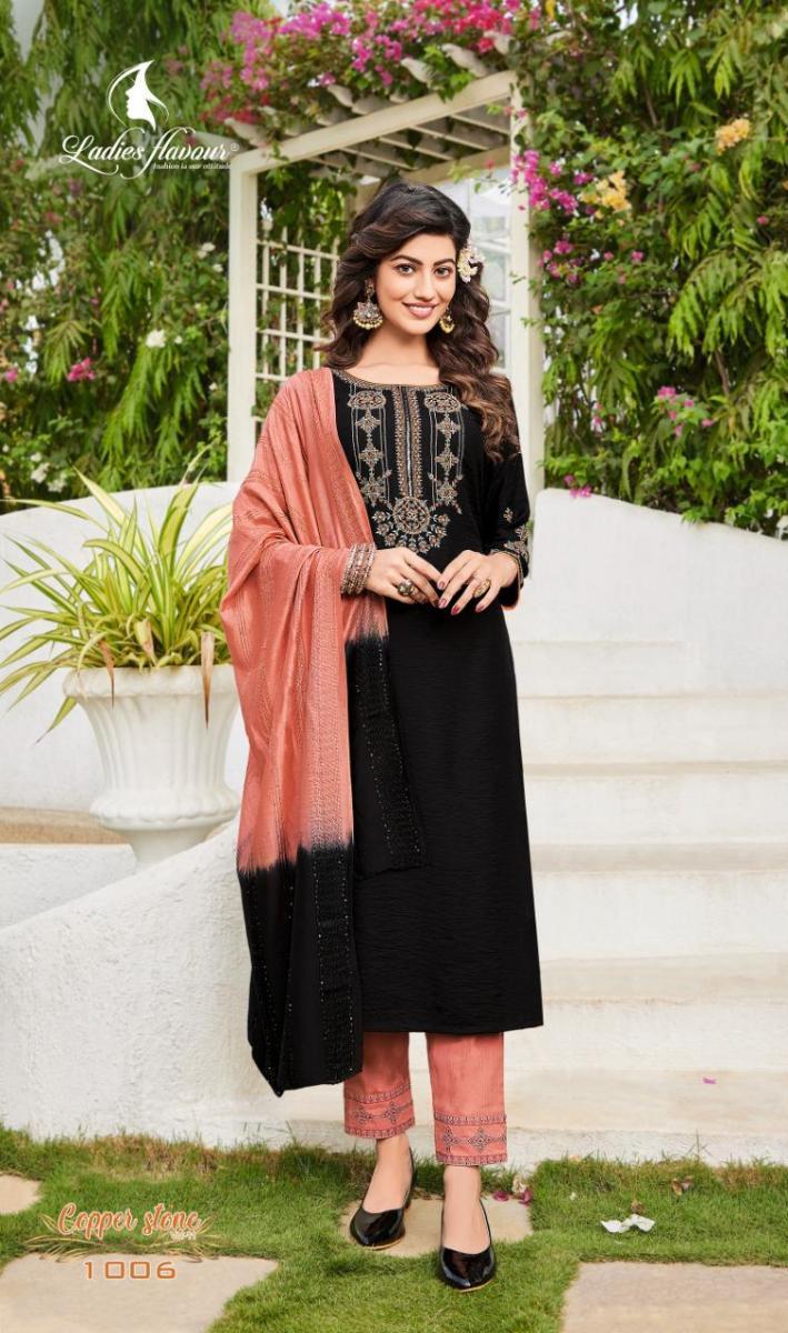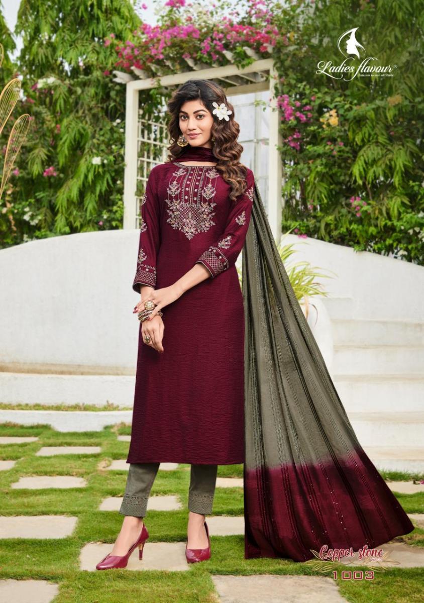 Copper Stone Vol-11 Kurti By Ladies Flavour Designer With Work Viscose Kurti With Bottom And Dupatta Are Available At Wholesale Price