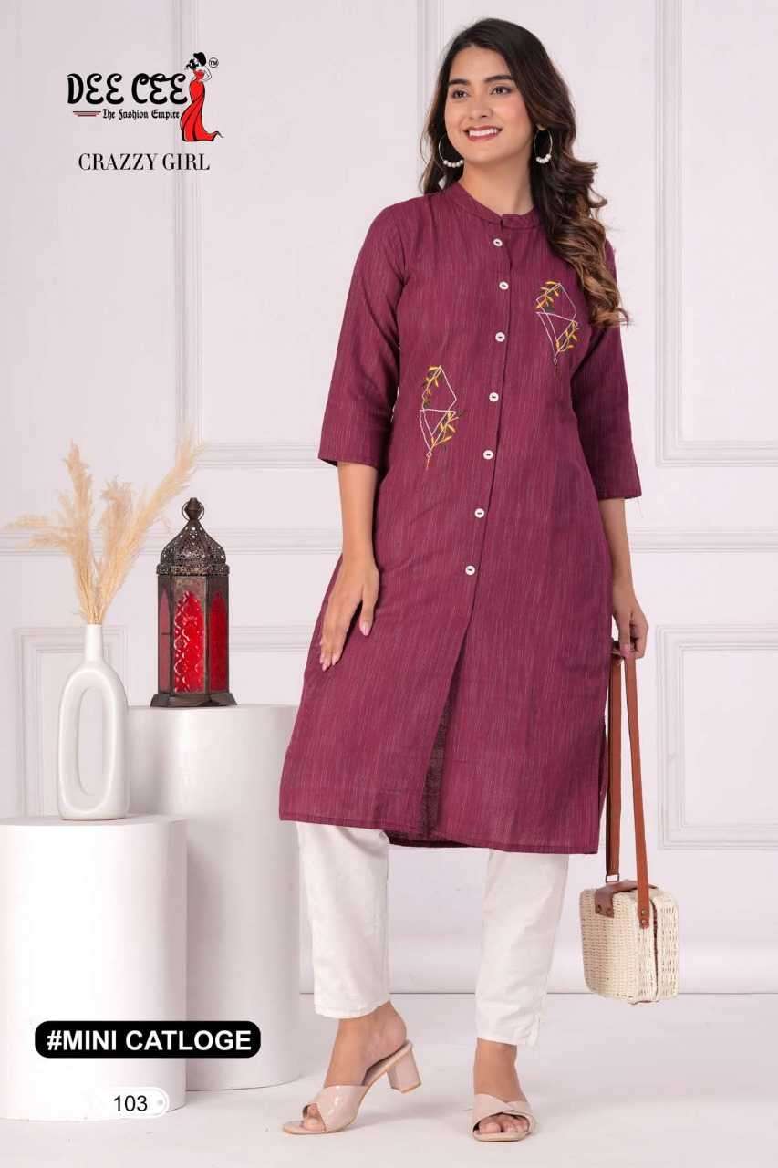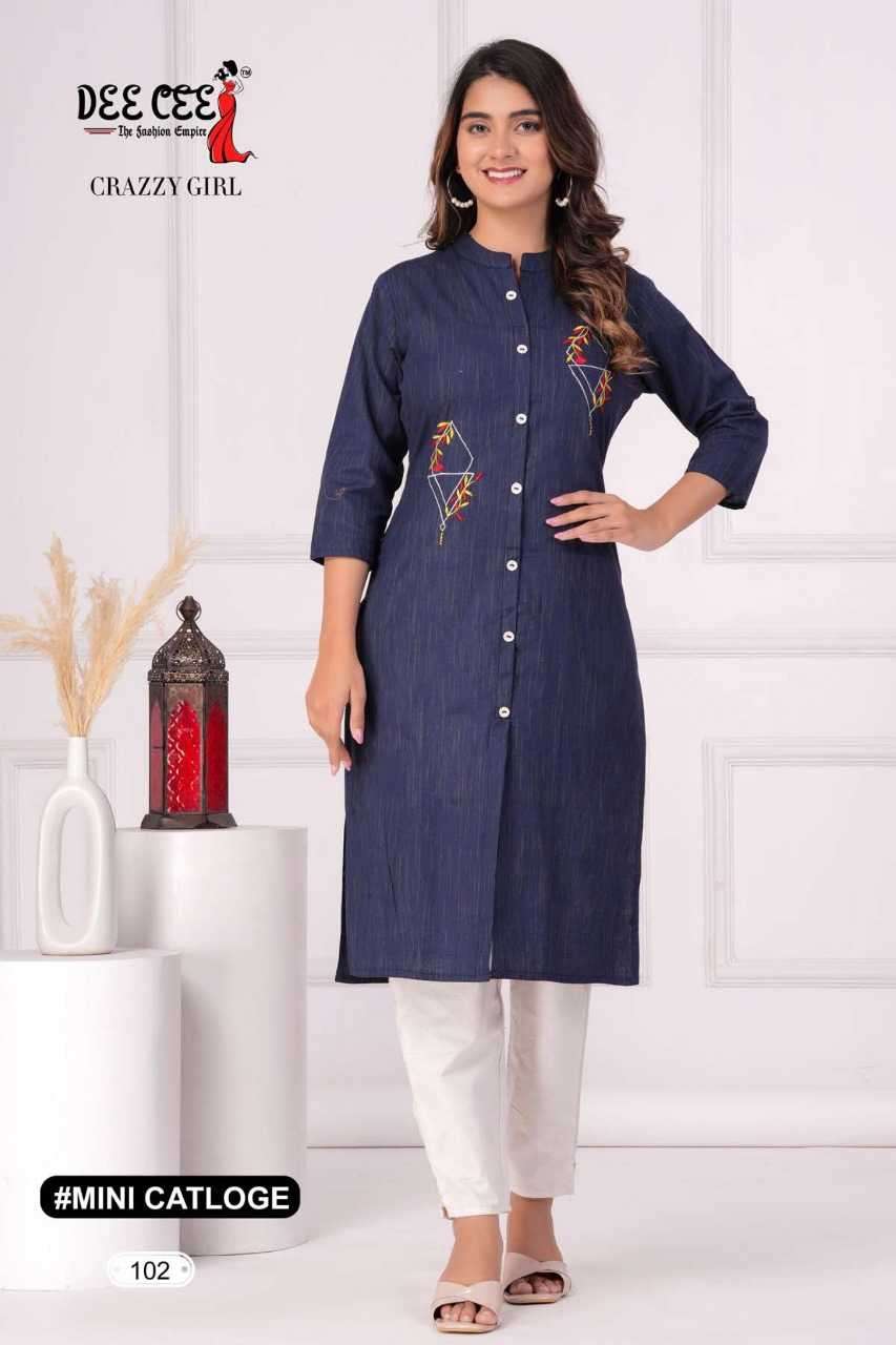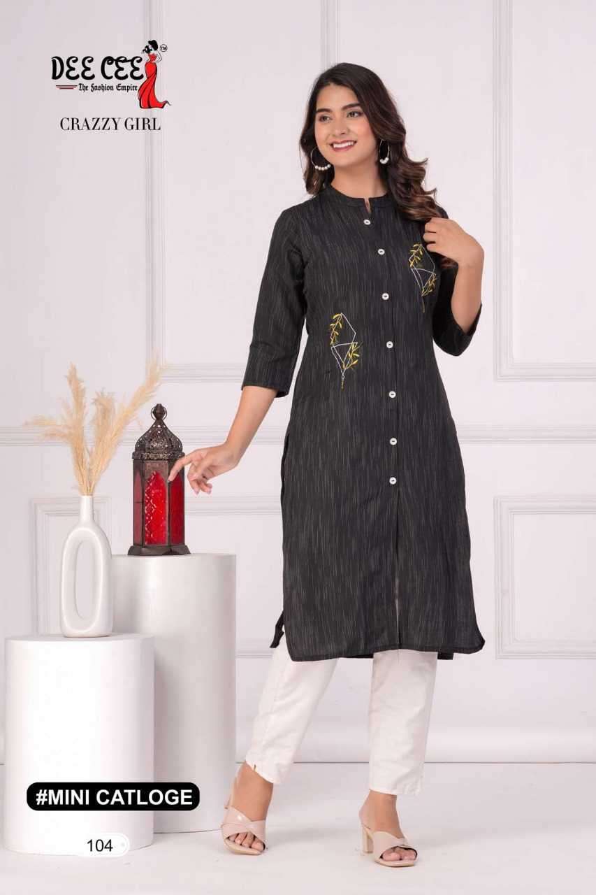 | Name: | dee cee-CRAZZY GIRL SERIES 101 TO 106 KURTI BY DEE CEE |