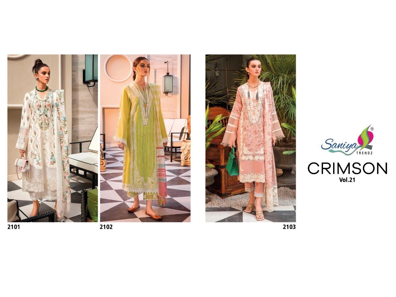 Crimson Vol-21 By Saniya Trendz Designer With Embroidery Work Pakistani Style Cambric Suits Are Available At Wholesale Price