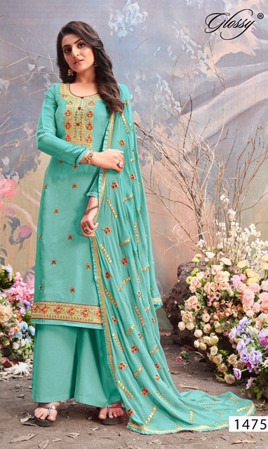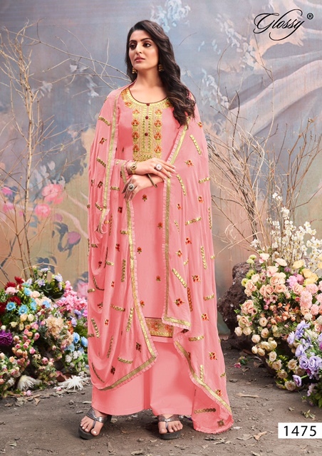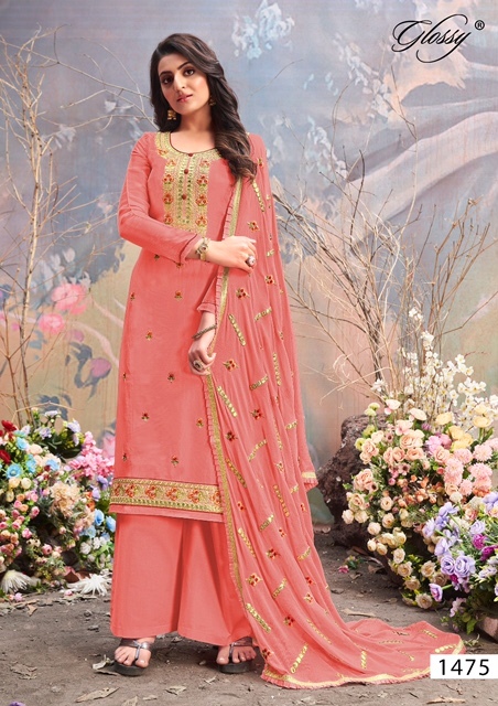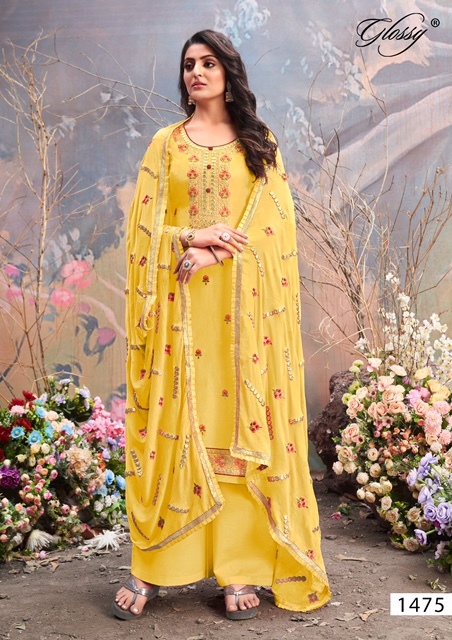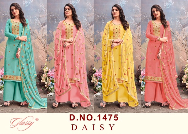 Daisy 1475 Series By Glossy Designer With Work Straight Upada Silk Suits Are Available At Wholesale Price