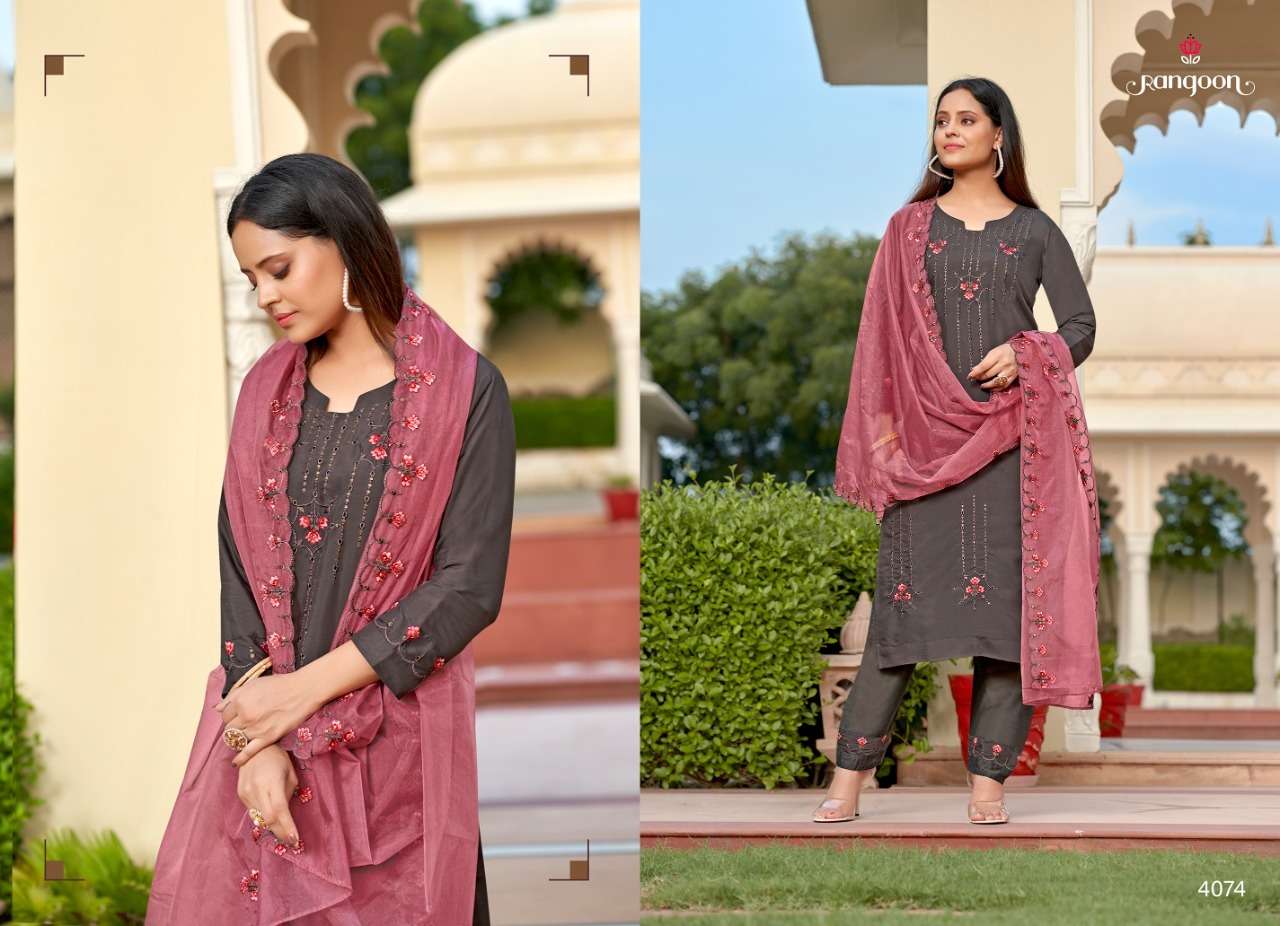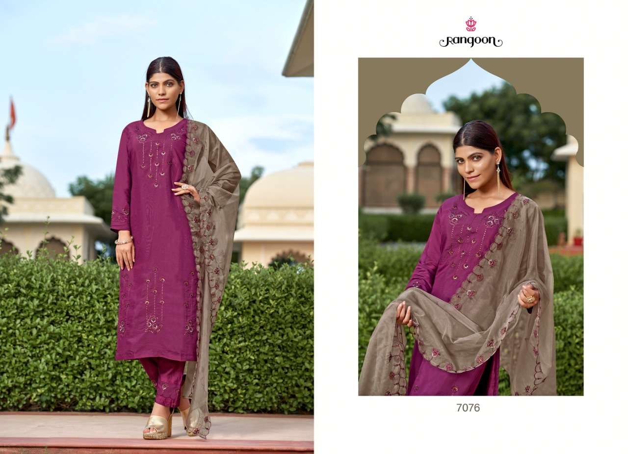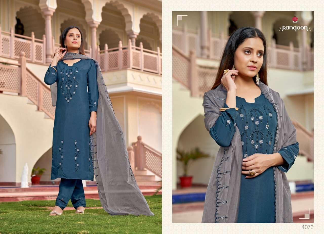 DAISY KURTI BY RANGOON DESIGNER WITH WORK VISCOSE KURTI WITH BOTTOM AND DUPATTA ARE AVAILABLE AT WHOLESALE PRICE