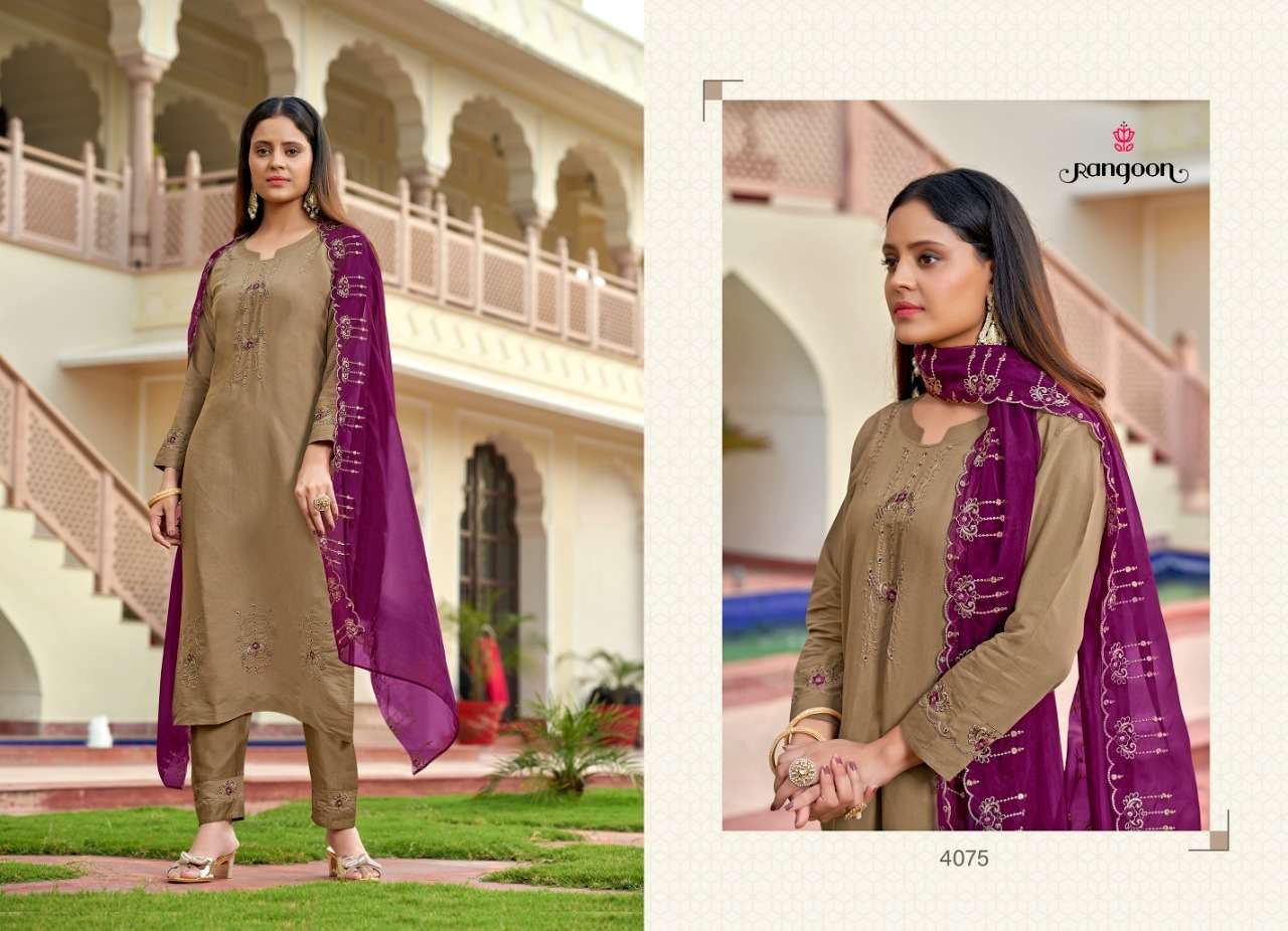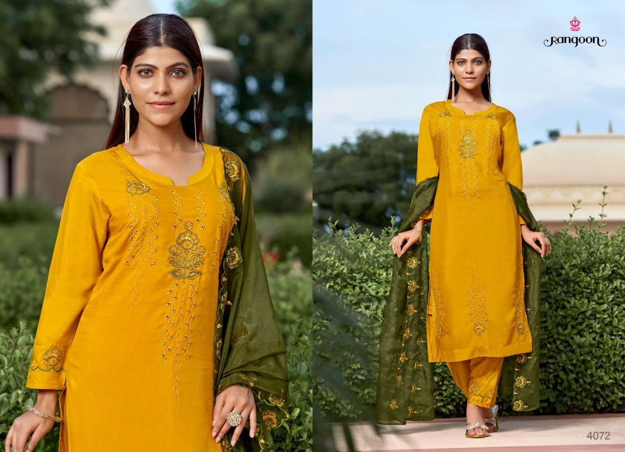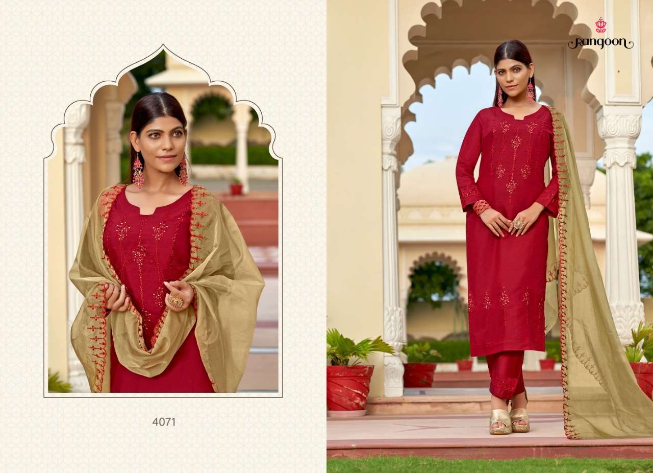 DAISY KURTI BY RANGOON DESIGNER WITH WORK VISCOSE KURTI WITH BOTTOM AND DUPATTA ARE AVAILABLE AT WHOLESALE PRICE