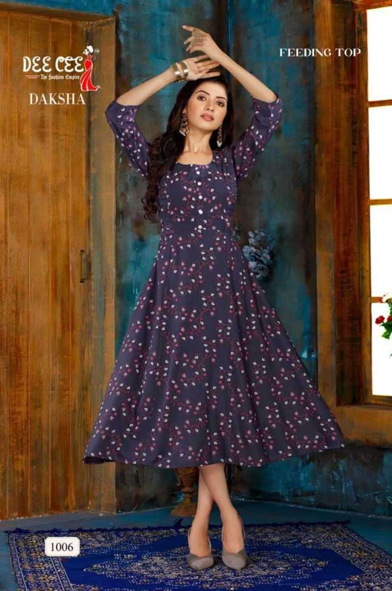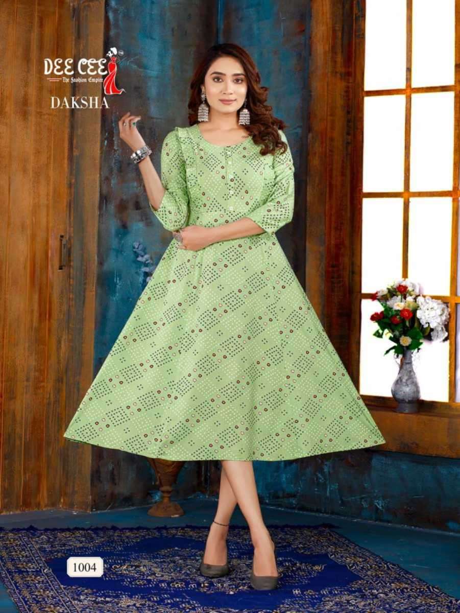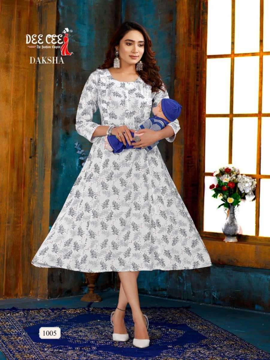 DAKSHA KURTI BY DEE CEE DESIGNER WITH PRINTED RAYON GOWN STYLE KURTIS ARE AVAILABLE AT WHOLESALE PRICE
