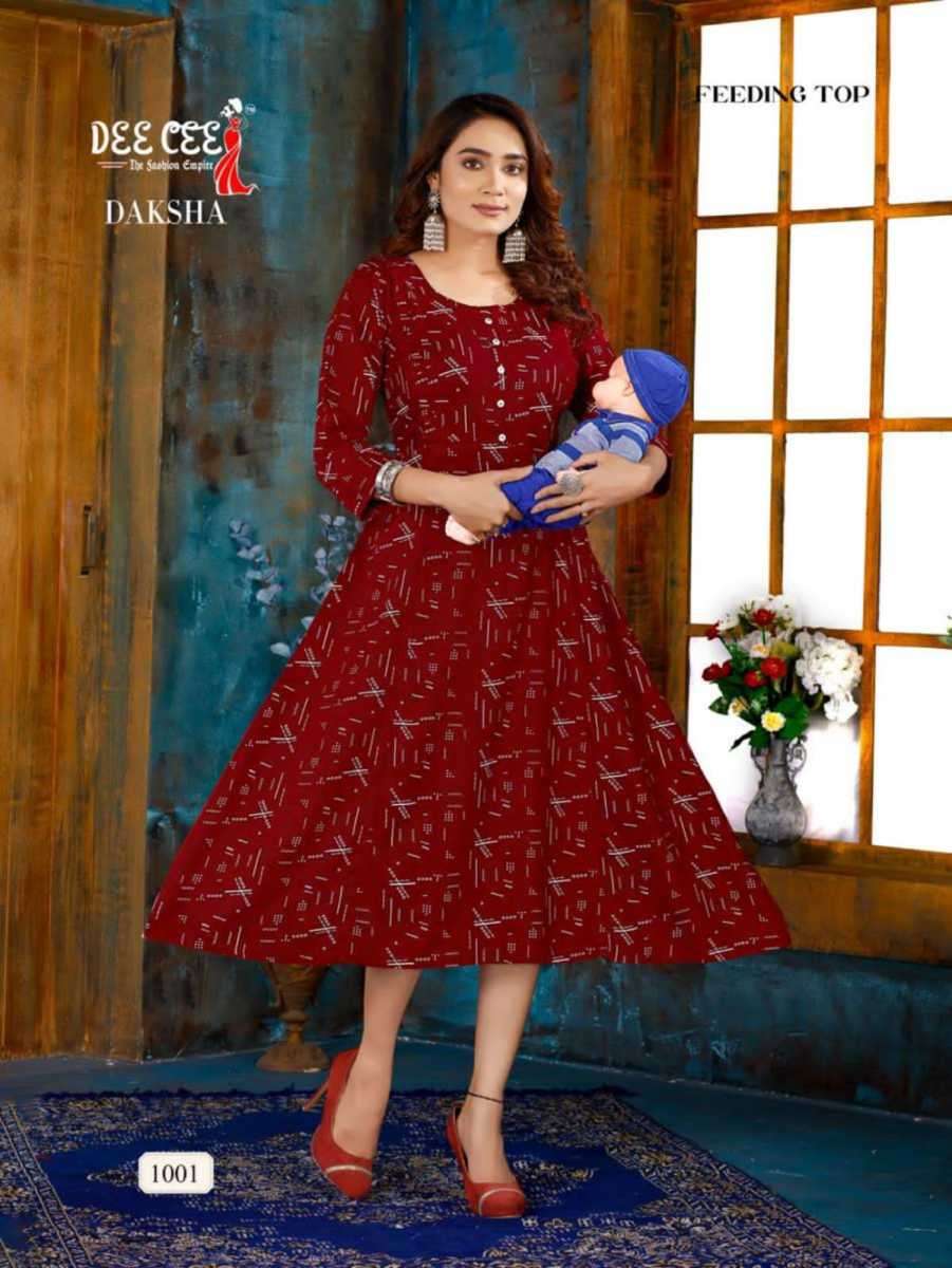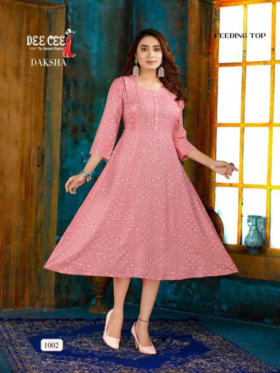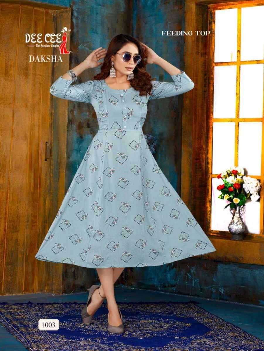 DAKSHA KURTI BY DEE CEE DESIGNER WITH PRINTED RAYON GOWN STYLE KURTIS ARE AVAILABLE AT WHOLESALE PRICE