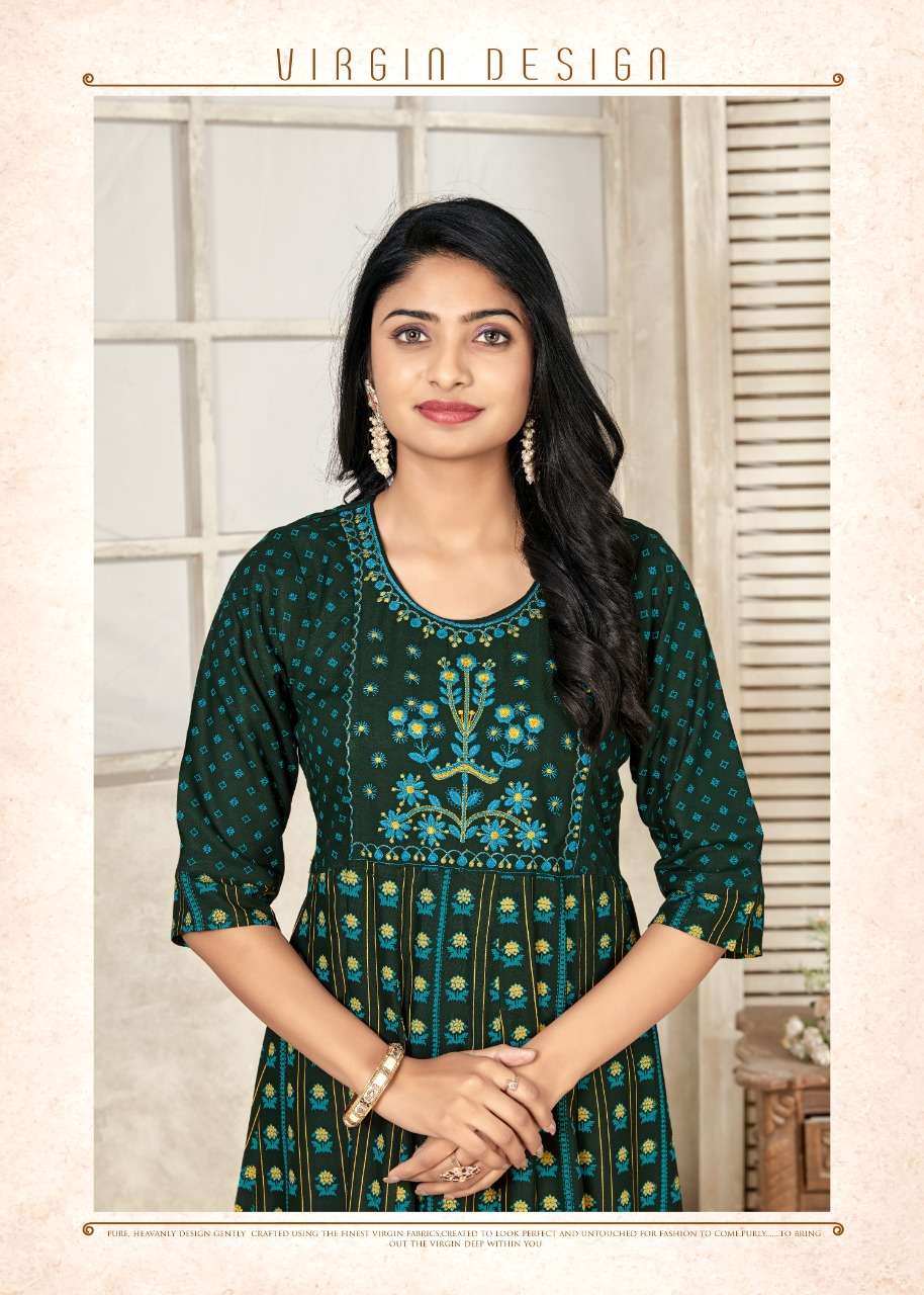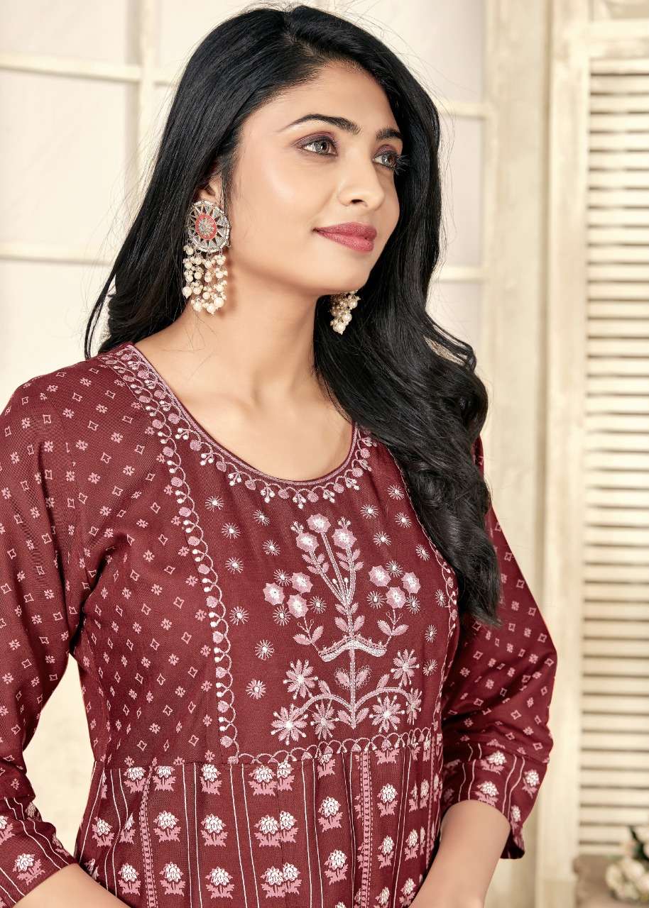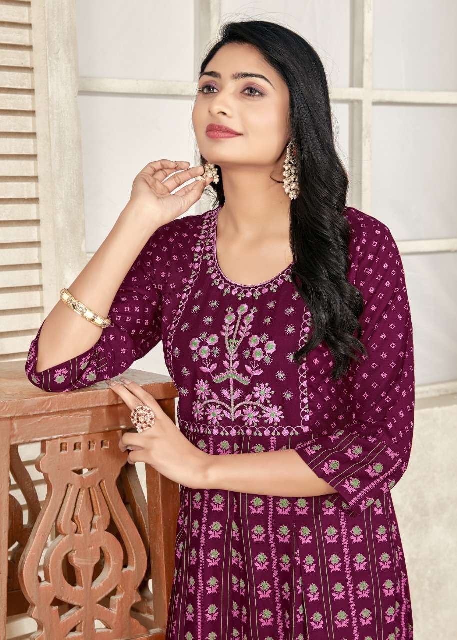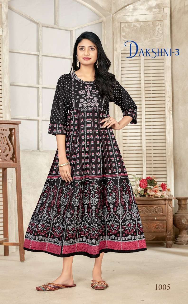 DAKSHNI VOL-3 KURTI BY BANWERY DESIGNER WITH FOIL PRINTED RAYON GOWN STYLE KURTIS ARE AVAILABLE AT WHOLESALE PRICE