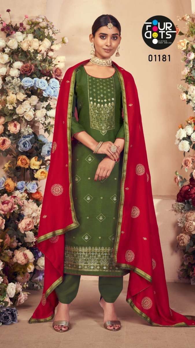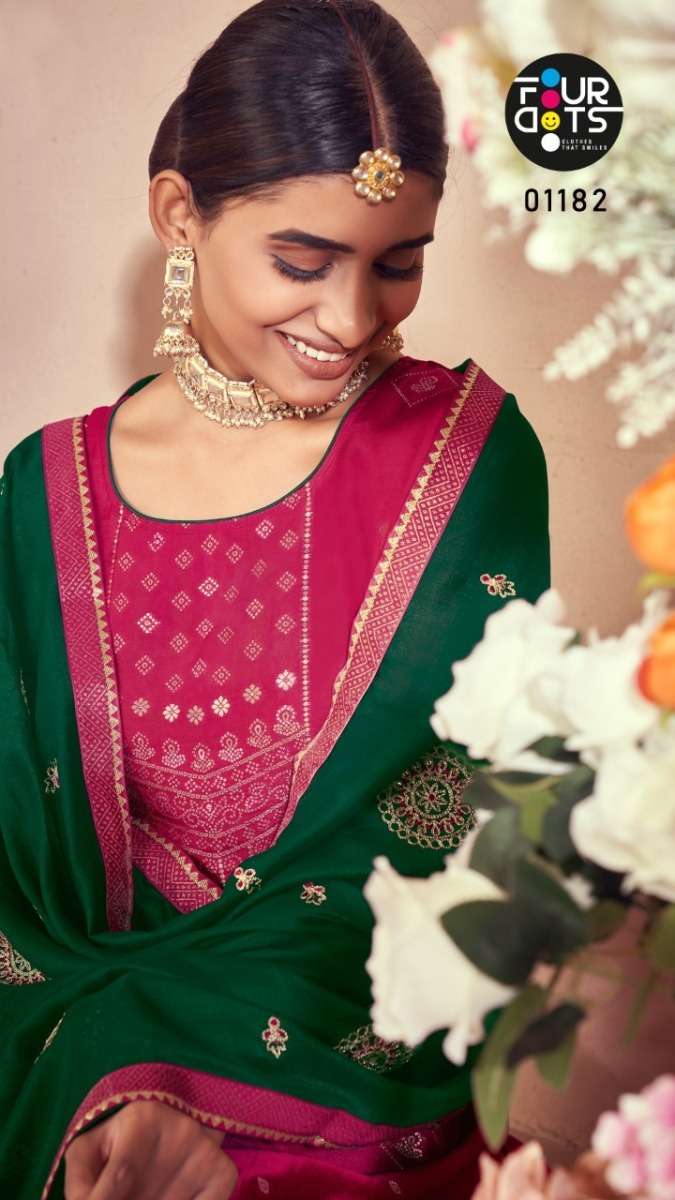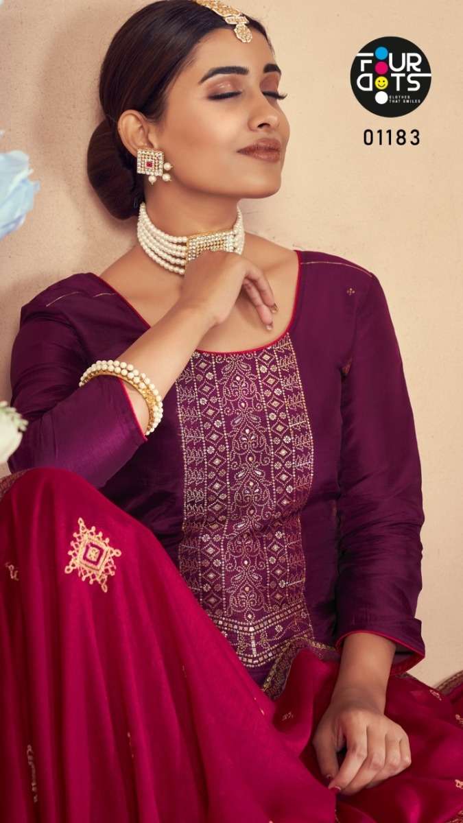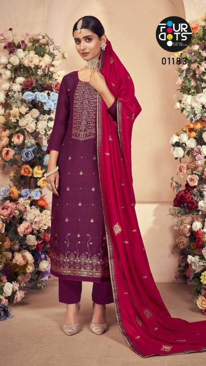 DEEPALI BY FOUR DOTS DESIGNER WITH WORK RUSSIAN DOLA JACQIATD SUITS ARE AVAILABLE AT WHOLESALE PRICE