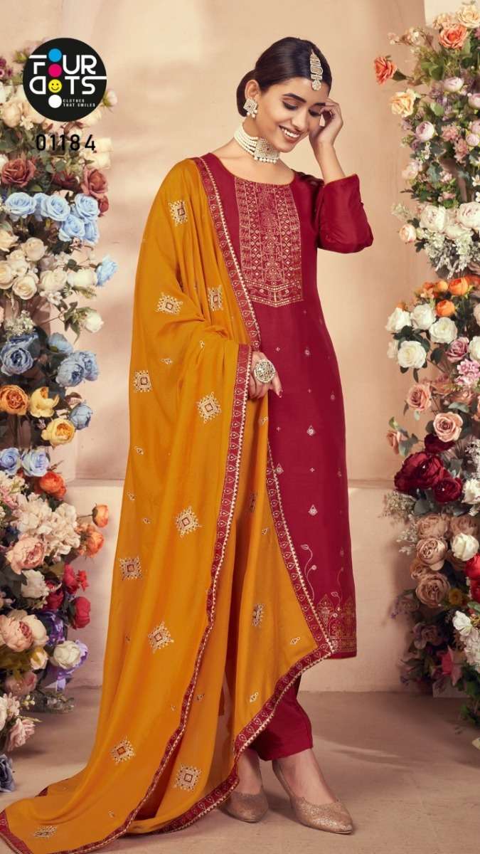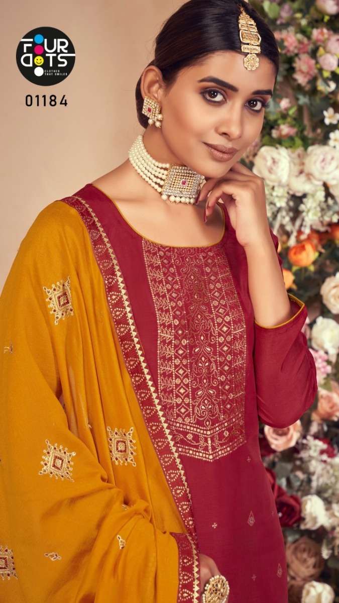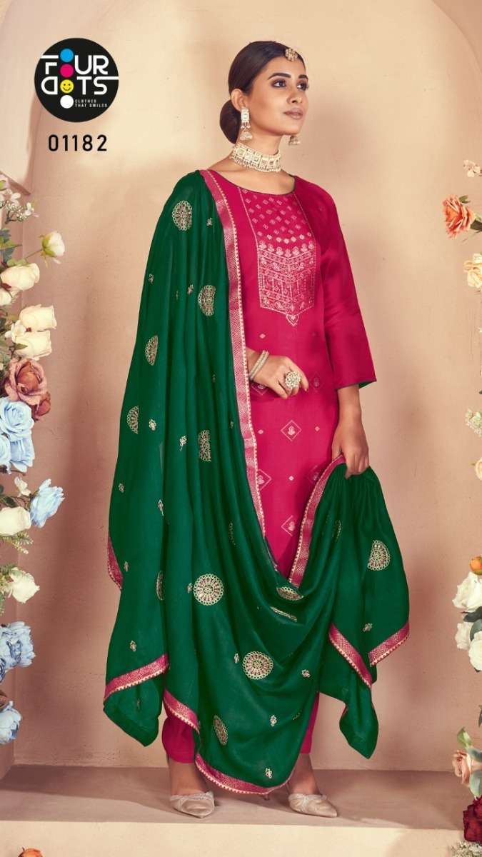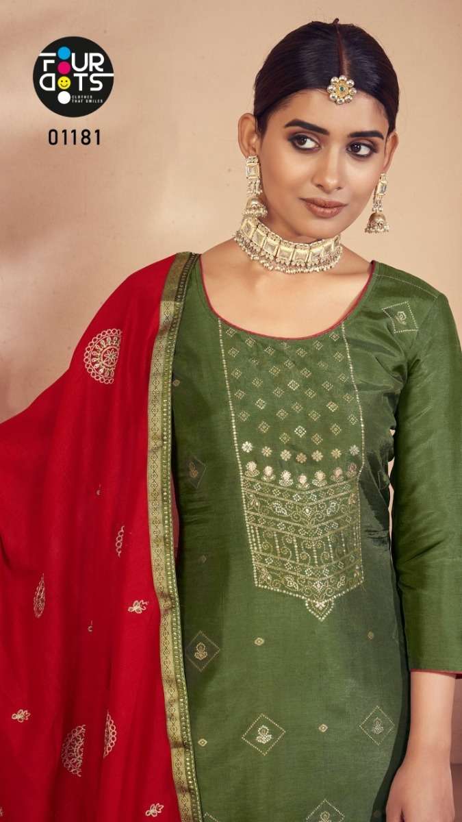 DEEPALI BY FOUR DOTS DESIGNER WITH WORK RUSSIAN DOLA JACQIATD SUITS ARE AVAILABLE AT WHOLESALE PRICE