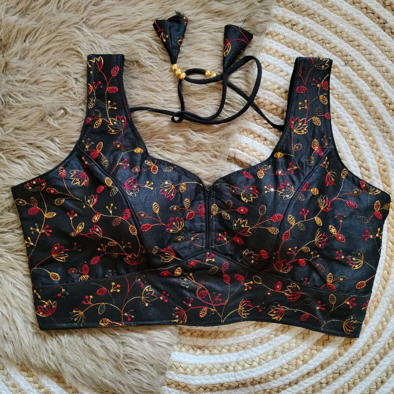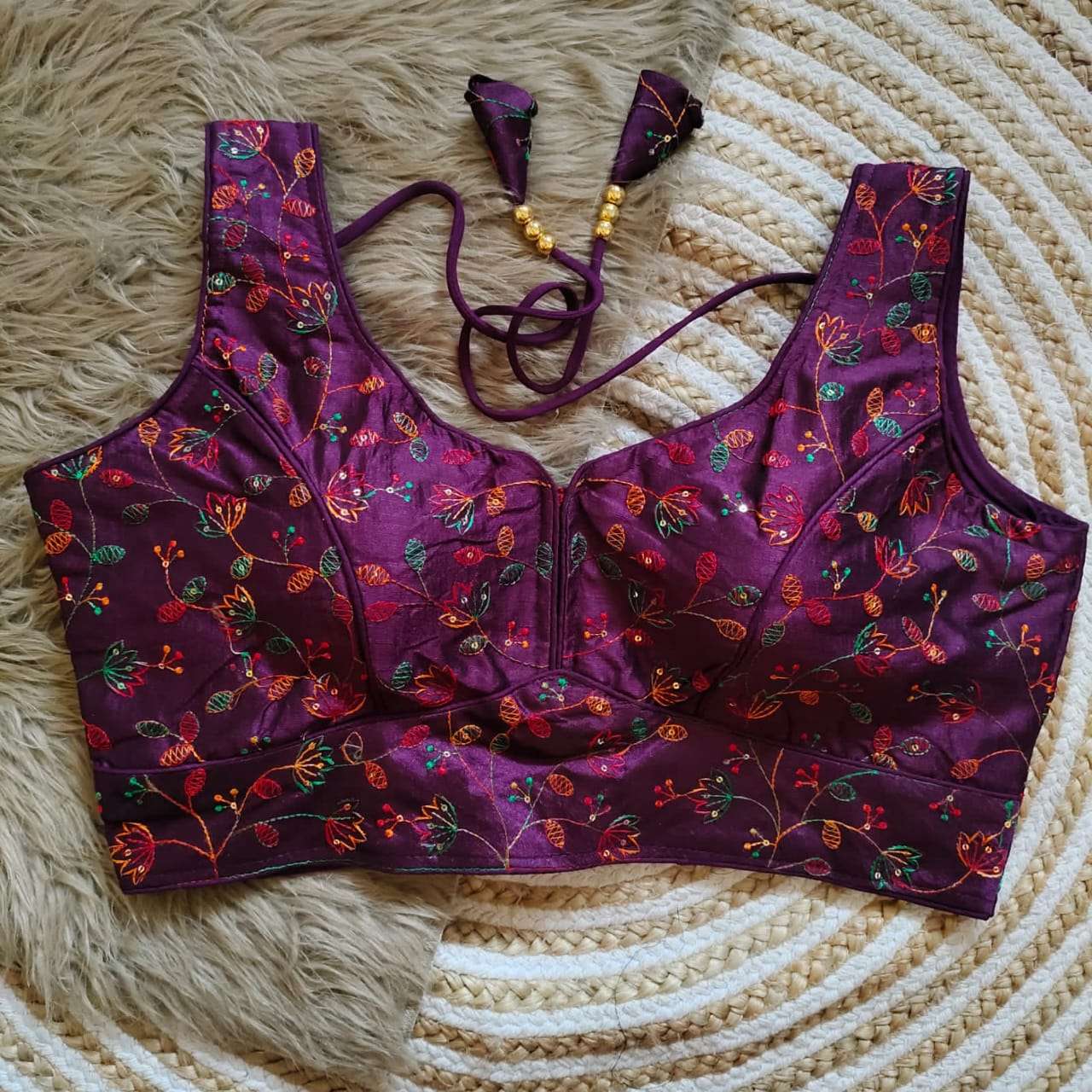 DESIGN - Codding and multy work blouse with back Superb oneside work, back open