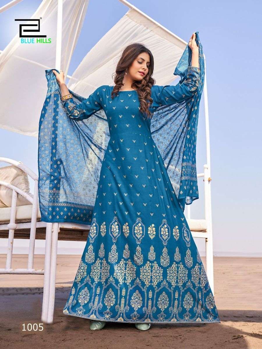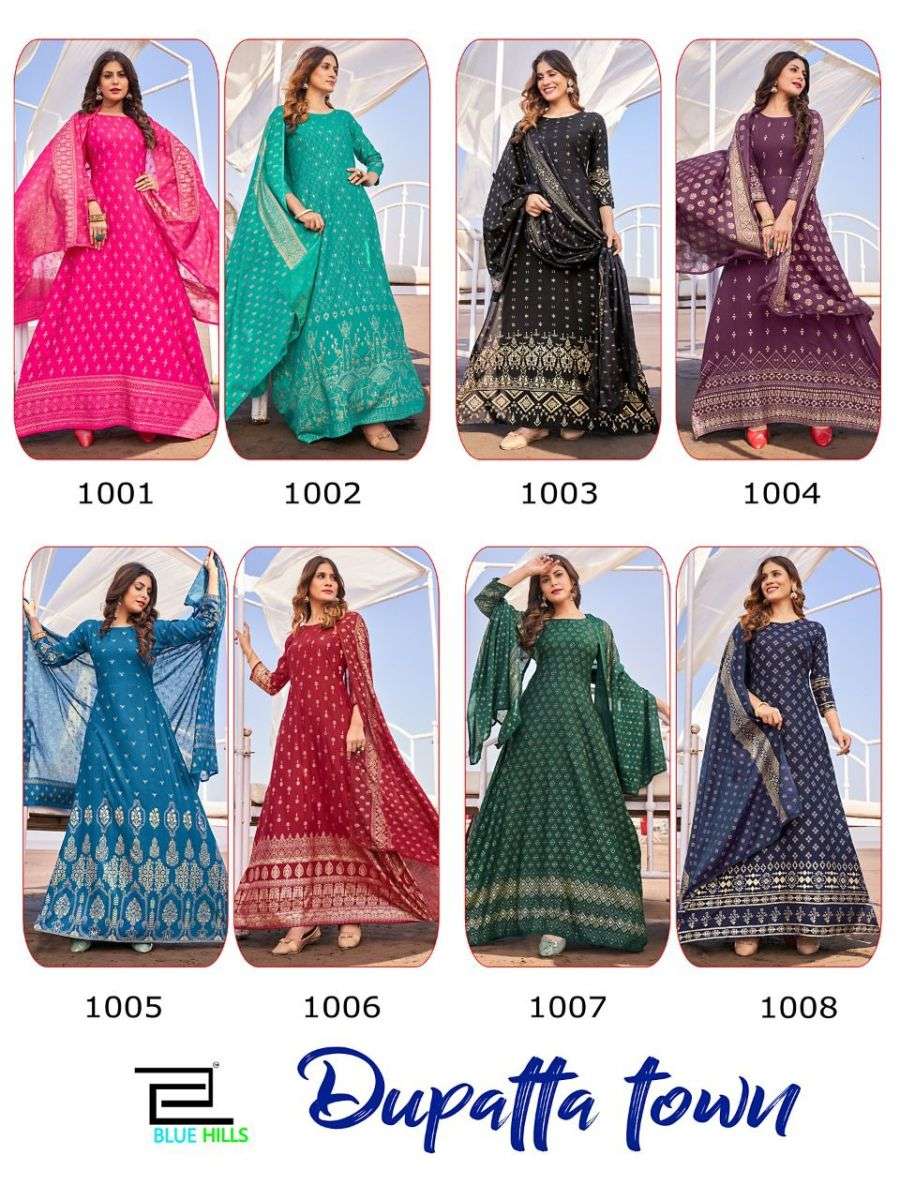 DUPATTA TOWN VOL-2 BY BLUE HILLS DESIGNER WITH FOIL PRINTED RAYON GOWN WITH DUPATTA ARE AVAILABLE AT WHOLESALE PRICE