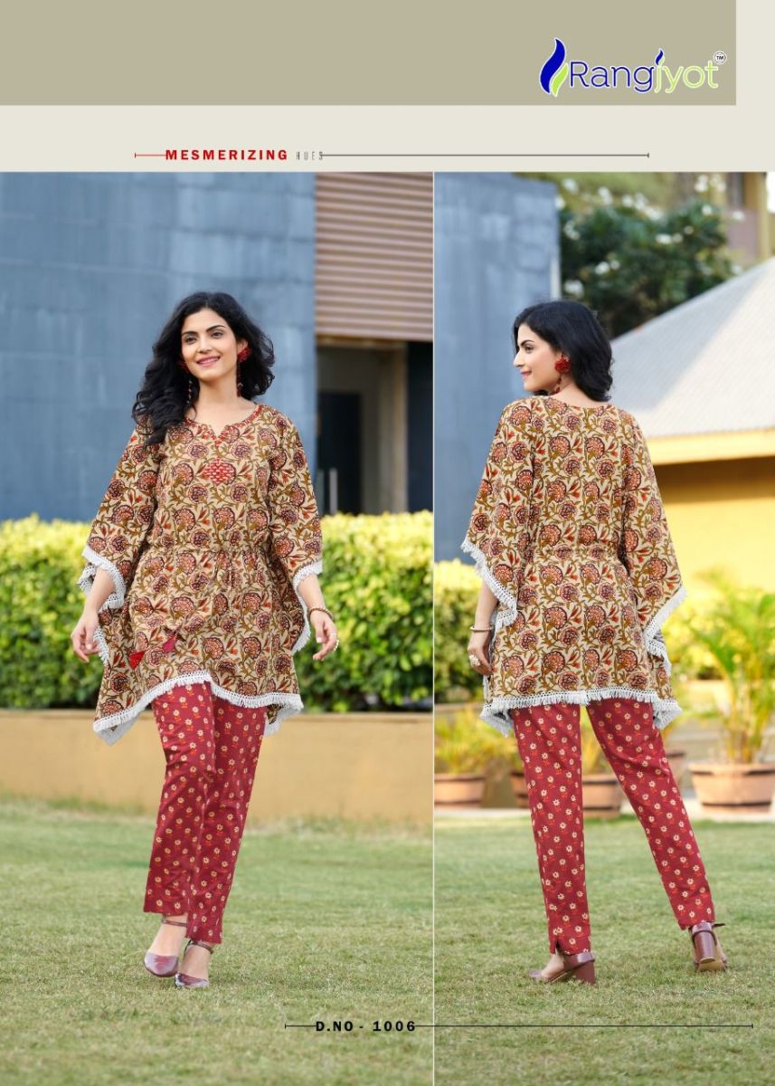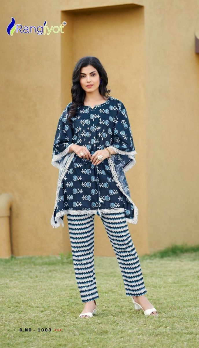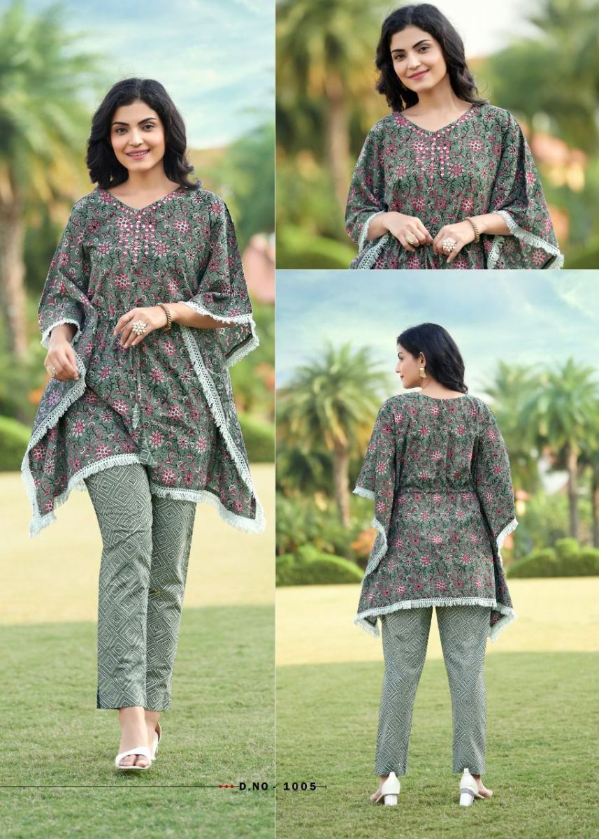 Eliza Kaftan By Rangjyot Designer With Printed Cotton Kaftan With Bottom Are Available At Wholesale Price