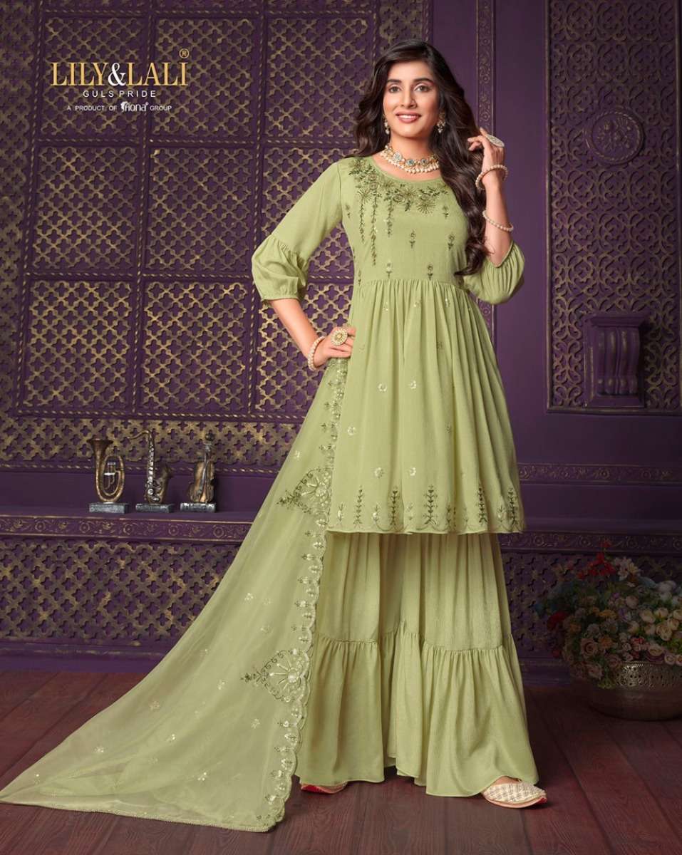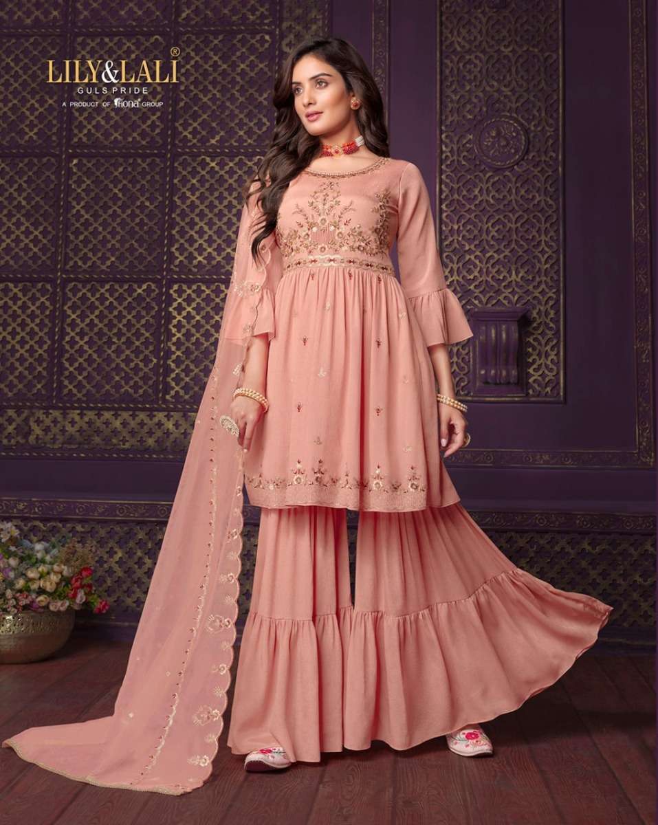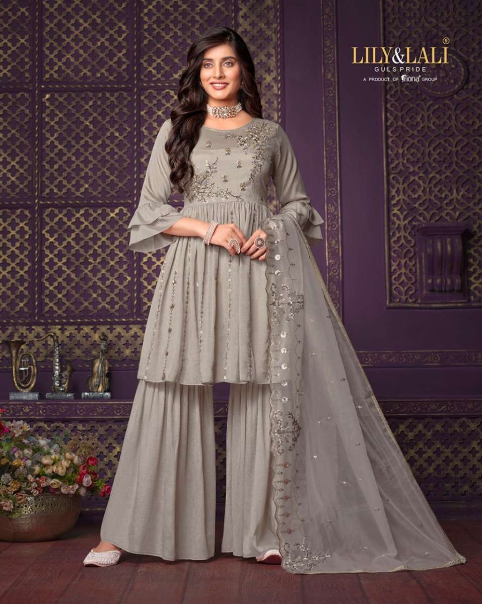 EMINENT VOL-2 BY LILY & LALI DESIGNER WITH WORK CHINON TOP WITH GARARA AND DUPATTA ARE AVAILABLE AT WHOLESALE PRICE