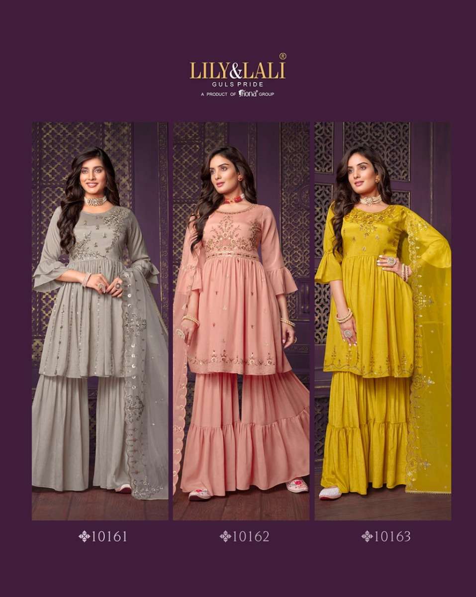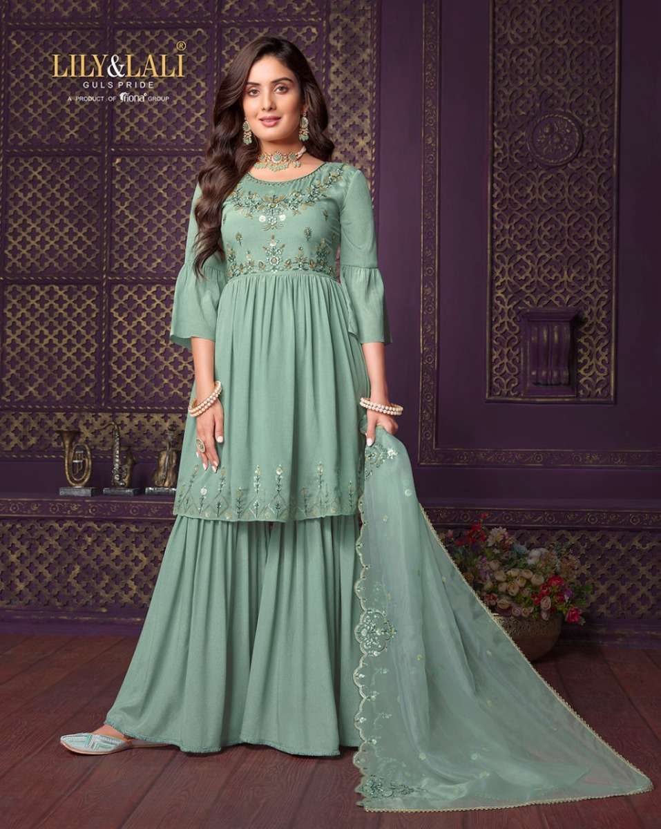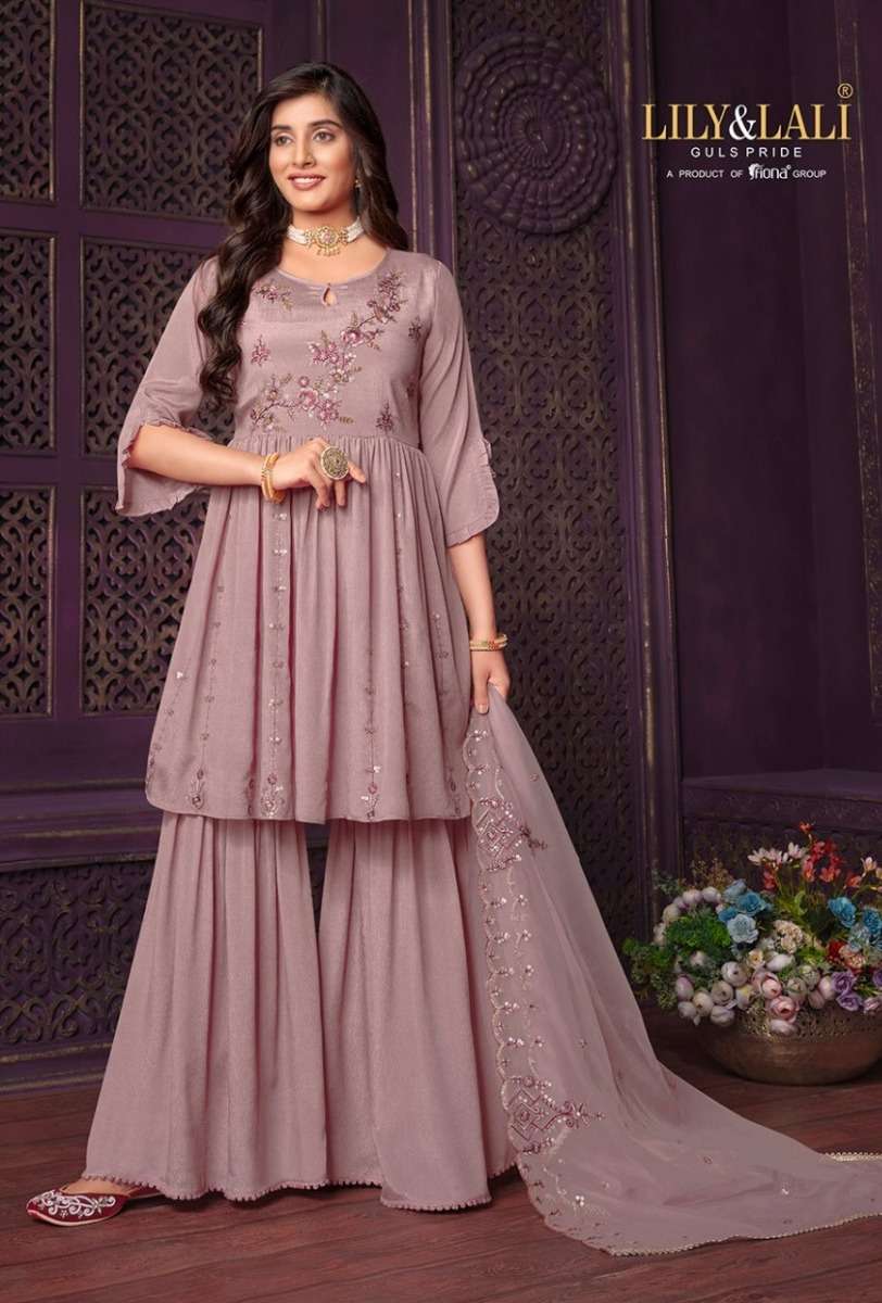 EMINENT VOL-2 BY LILY & LALI DESIGNER WITH WORK CHINON TOP WITH GARARA AND DUPATTA ARE AVAILABLE AT WHOLESALE PRICE