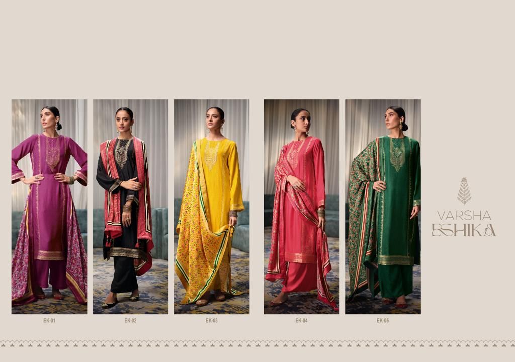 Eshika By Varsha Designer With Hand Work Viscose Satin Suits Are Available At Wholesale Price
