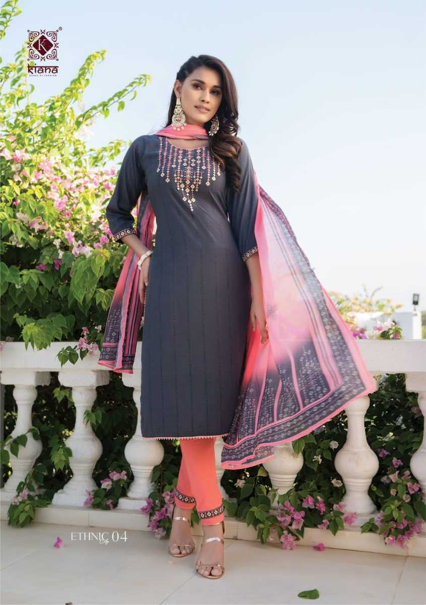 Ethnic City Kurti By Kiana Designer With Work Viscose Kurt With Bottom And Dupatta Are Available At Wholesale Price