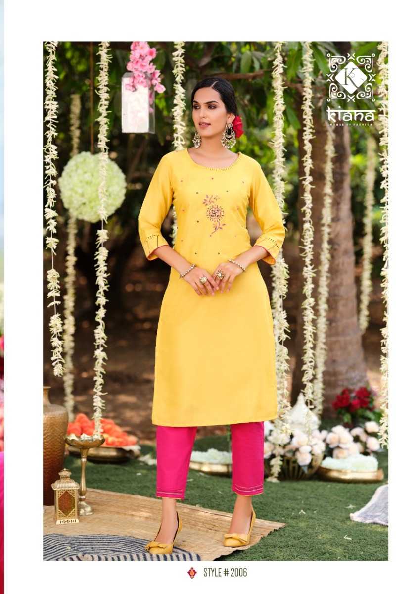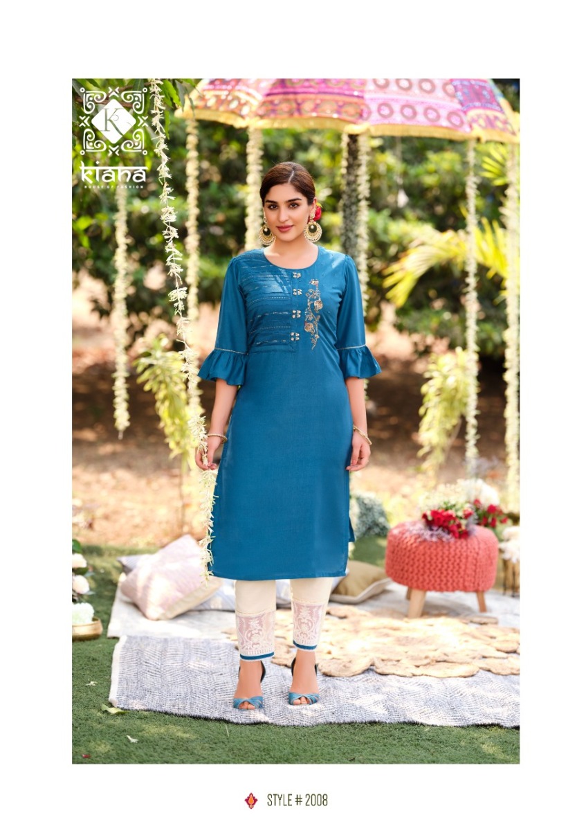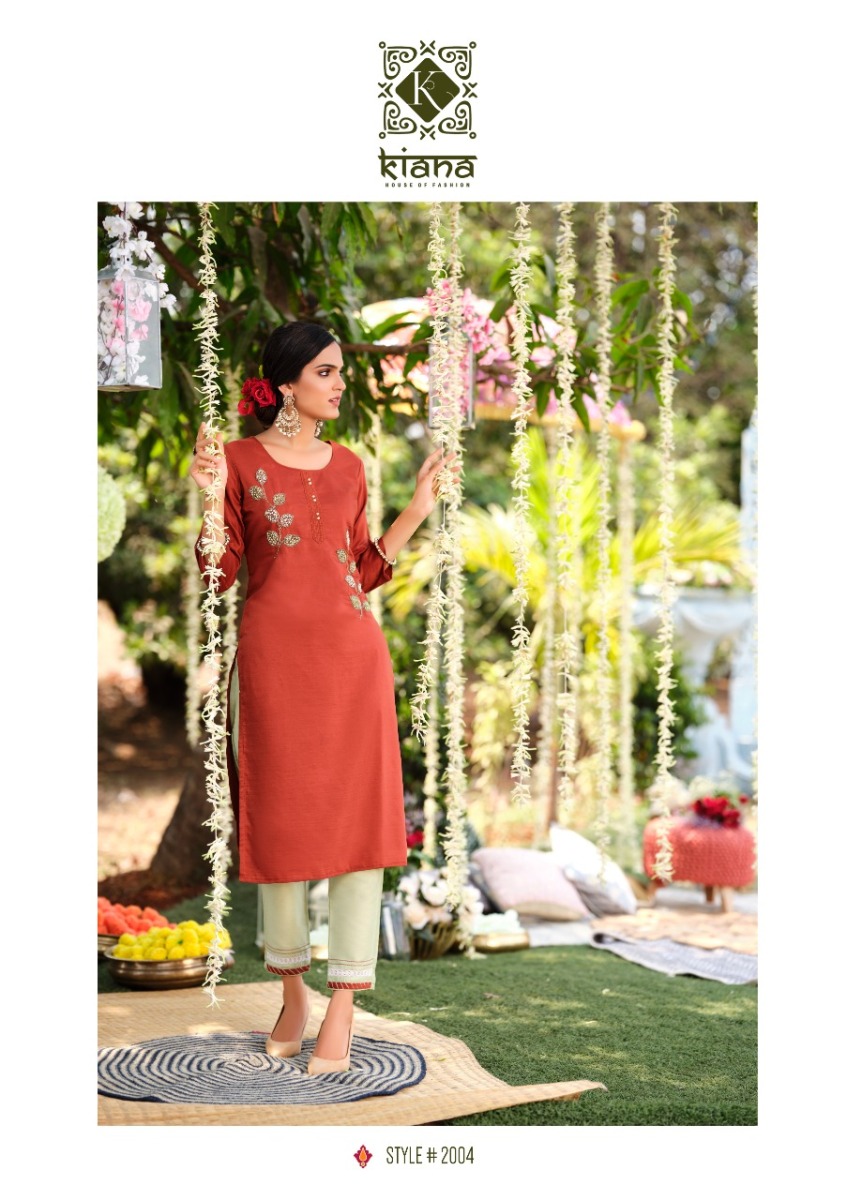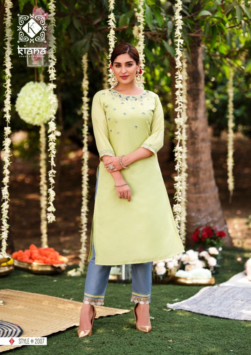 Fantasy Kurti By Kiana Designer With Work Muslin Kurti With Pant Are Available At Wholesale Price