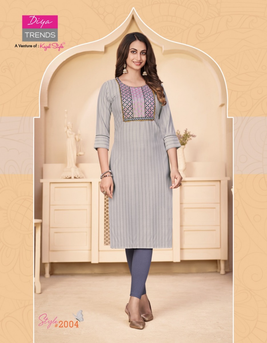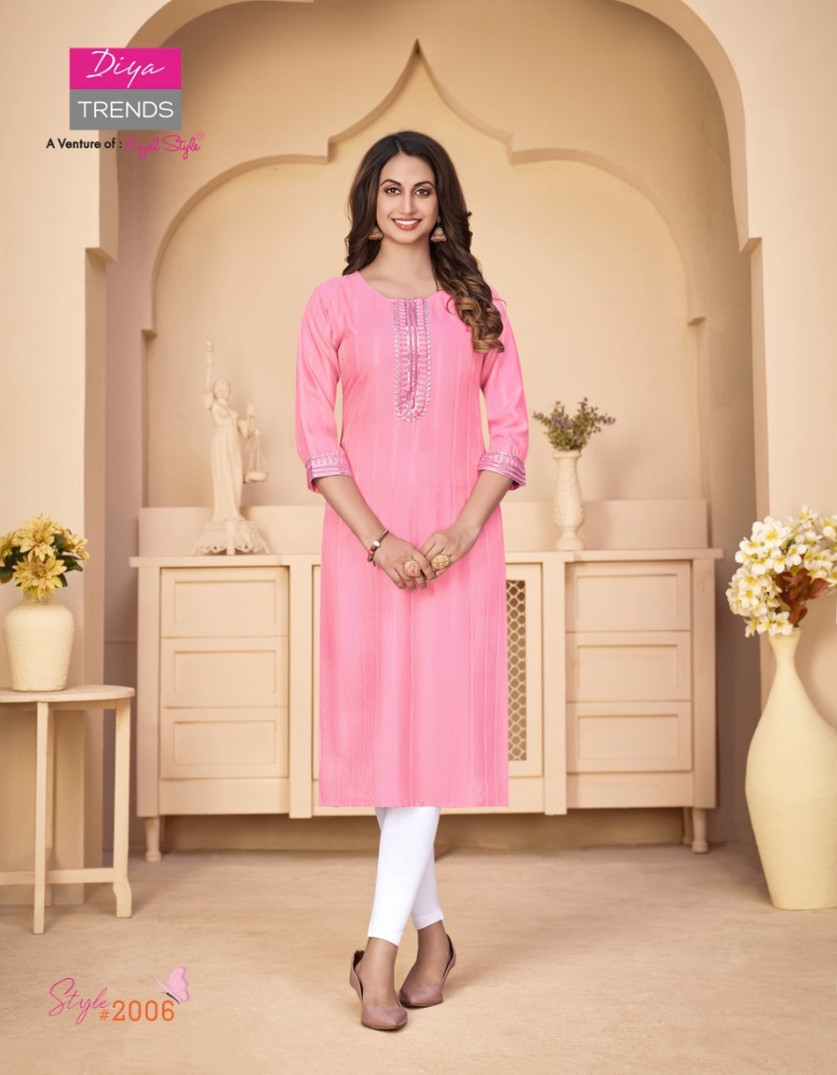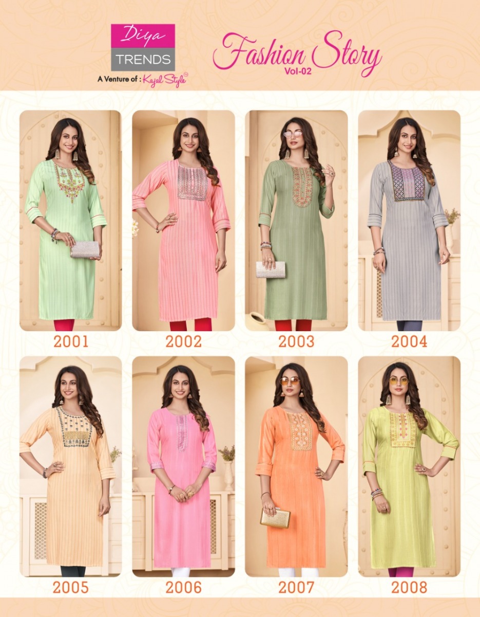 Fashion Story Vol-2 Kurti By Diya Trends Designer With Embroidery Work Rayon Kurtgis Are Available At Wholesale Price