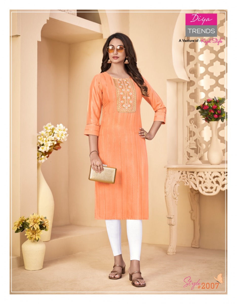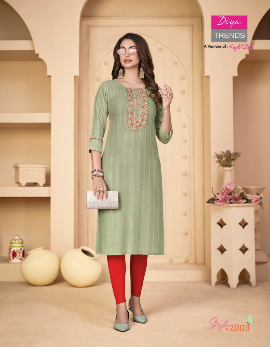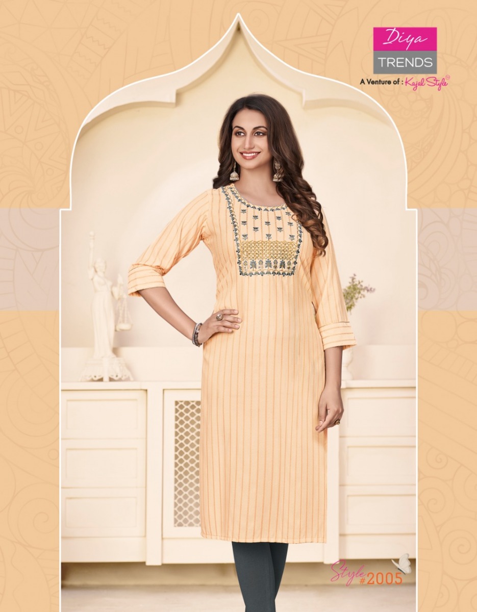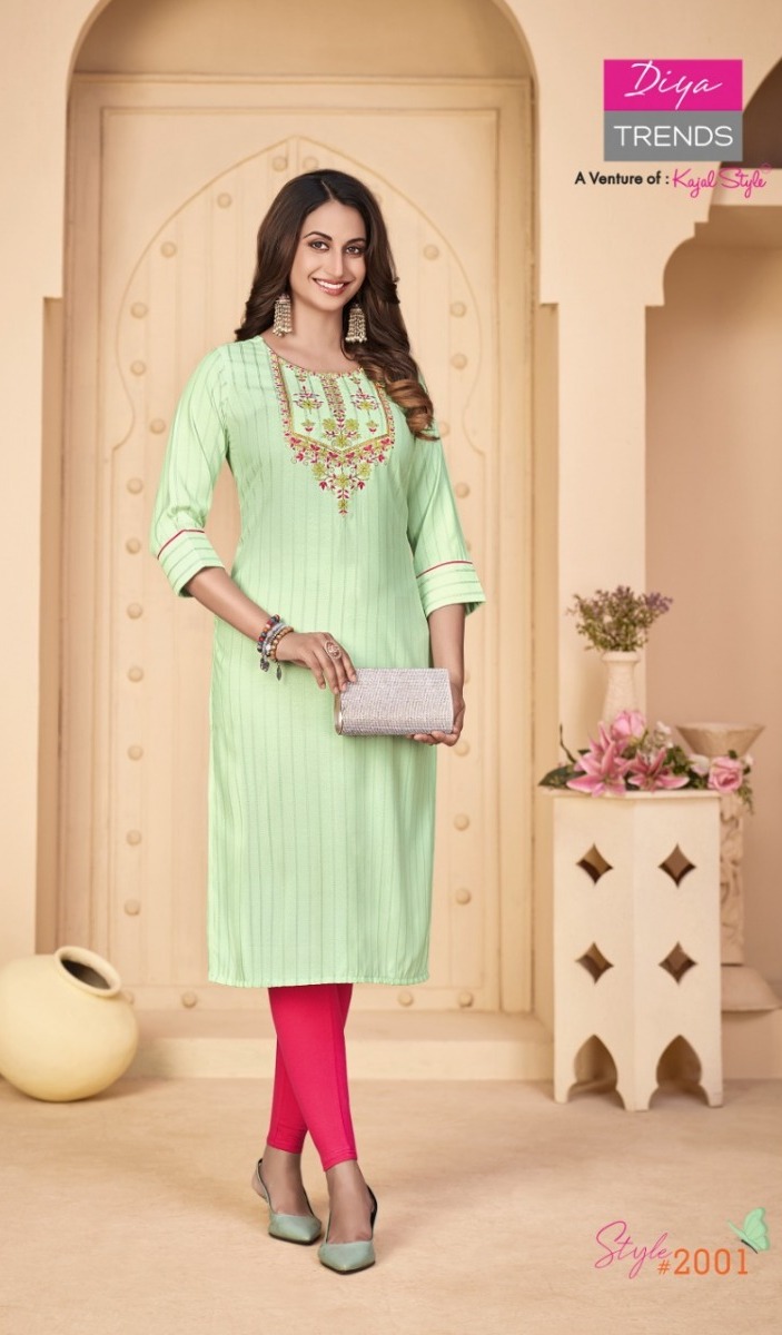 Fashion Story Vol-2 Kurti By Diya Trends Designer With Embroidery Work Rayon Kurtgis Are Available At Wholesale Price