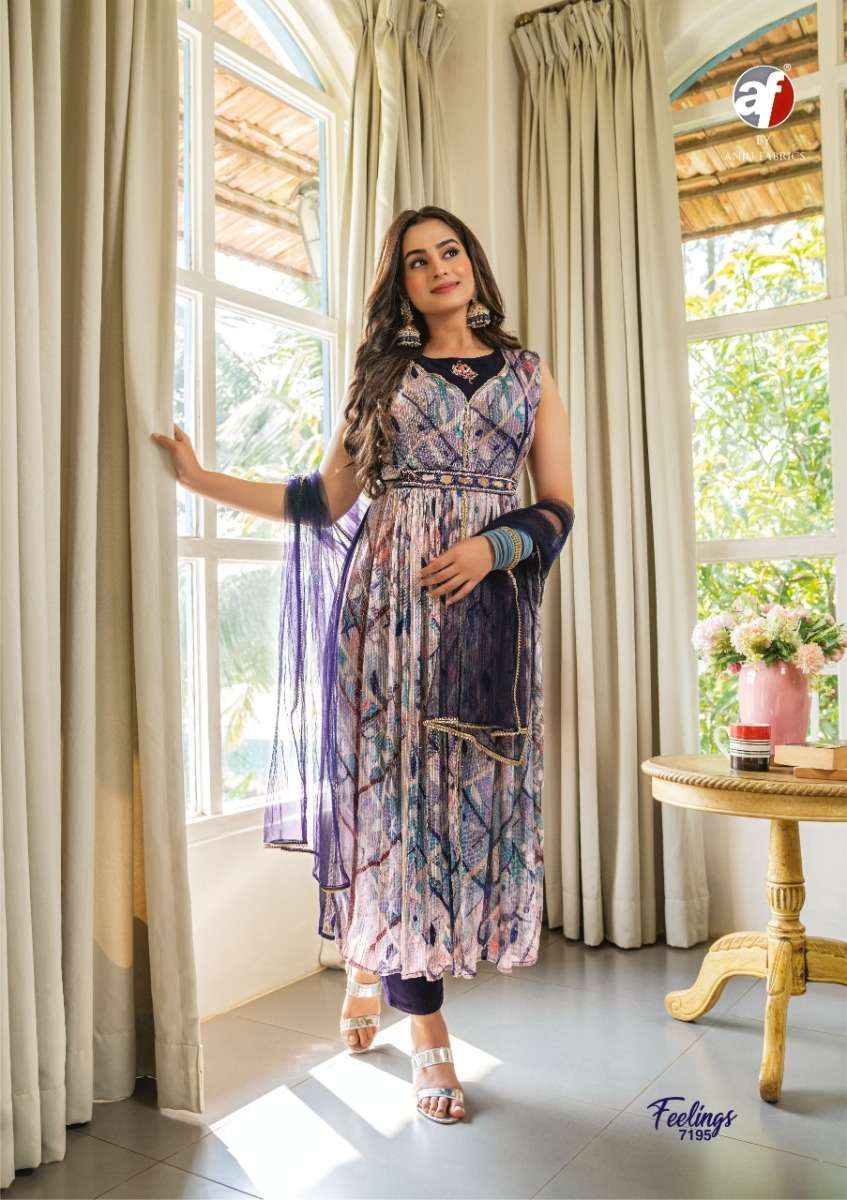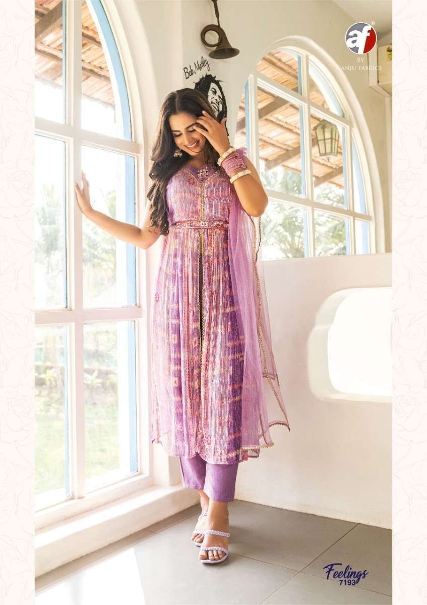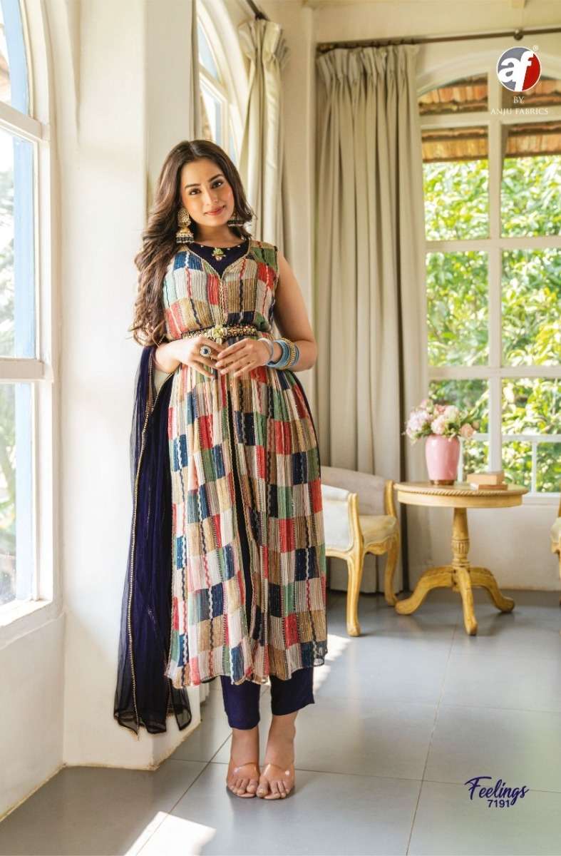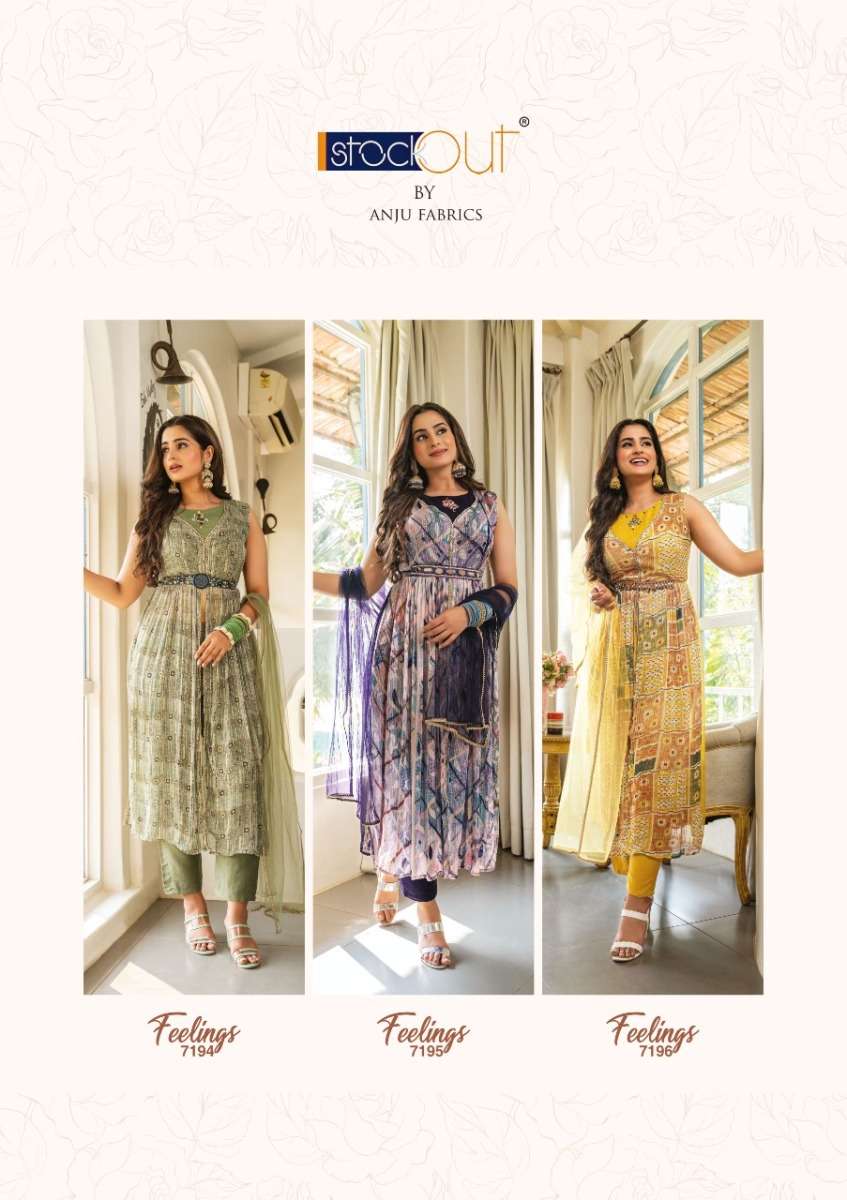 FEELINGS KURTI BY ANJU FABRICS DESIGNER WITH PRINTED AND WORK GEORGETTE KURTI WITH PANT AND DUPATTA ARE AVAILABLE AT WHOLESALE PRICE