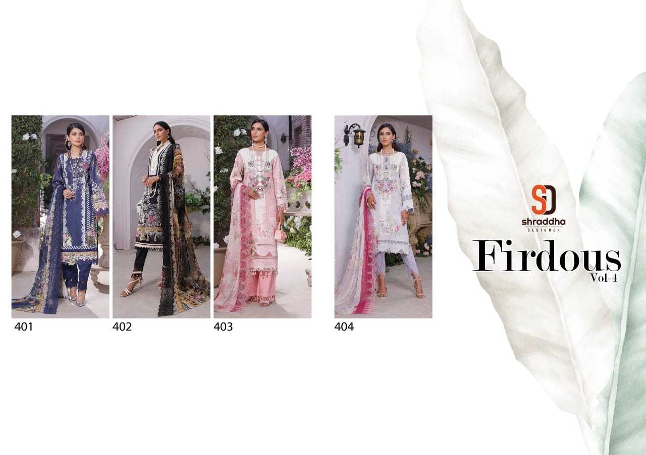 Firdous Vol-4 By Shraddha Designer Designer With Work Lawn Cotton Pakistani Style Suits Are Available At Wholesale Price