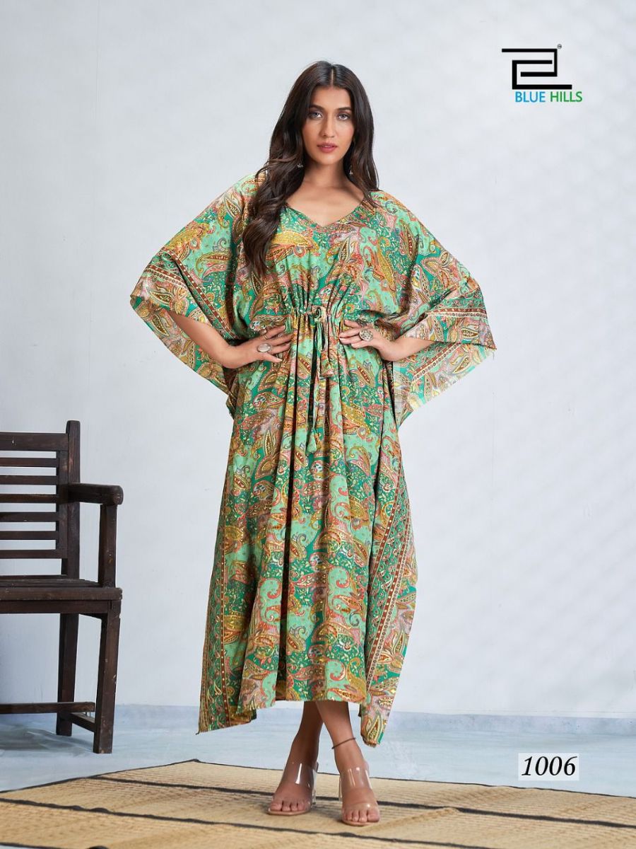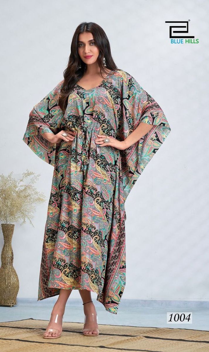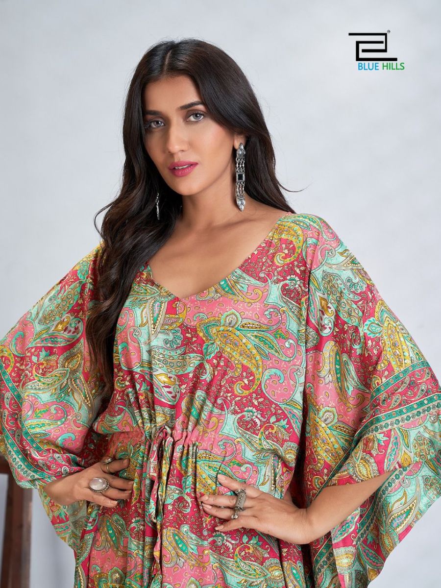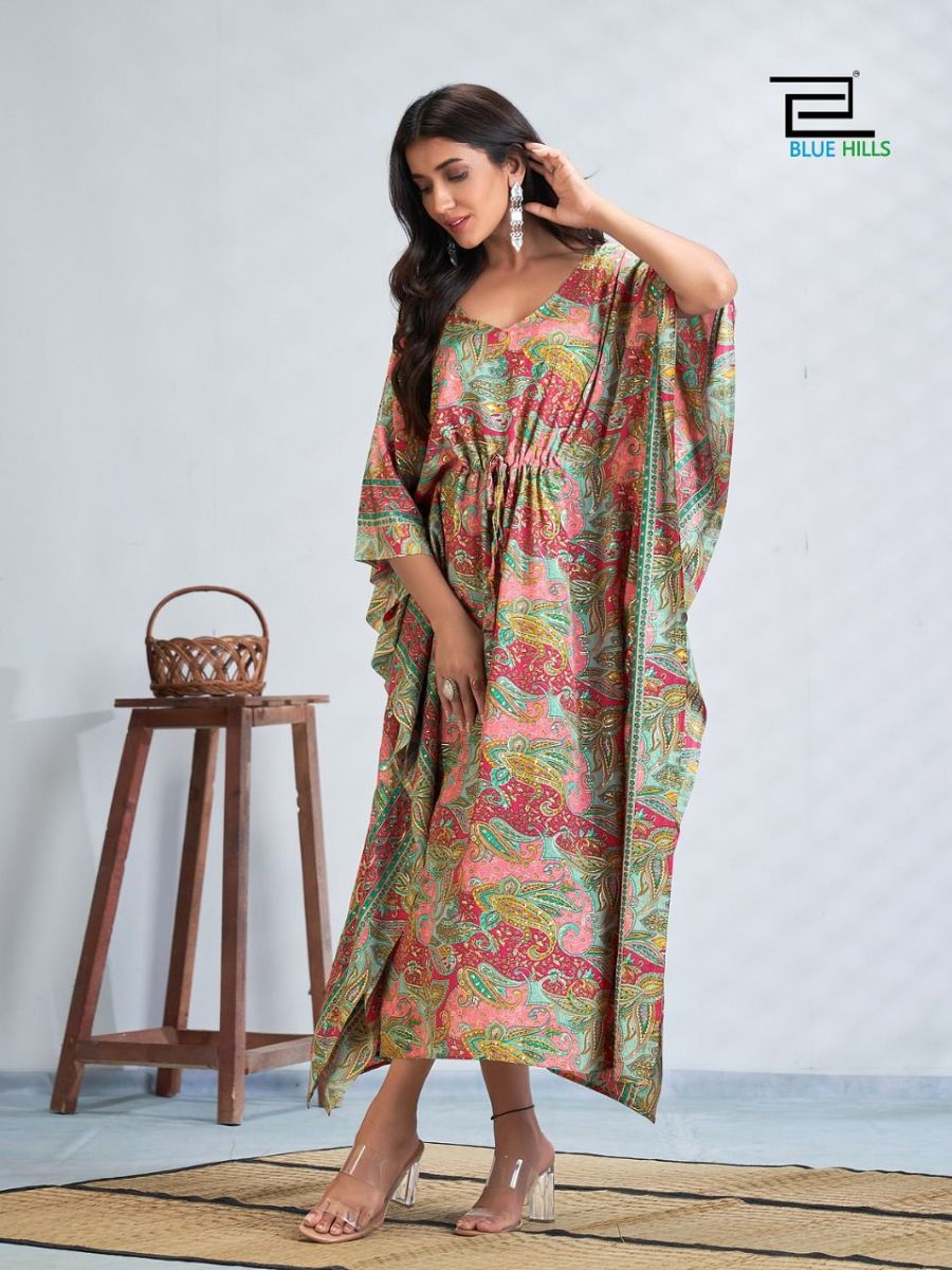 Fire Walk Kaftan By Blue Hills Designer With Printed French Crepe Kaftans Are Available At Wholesale Price