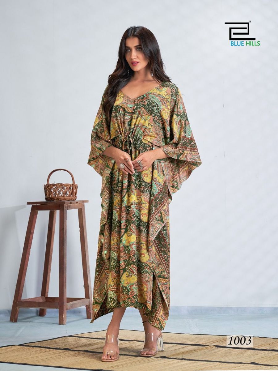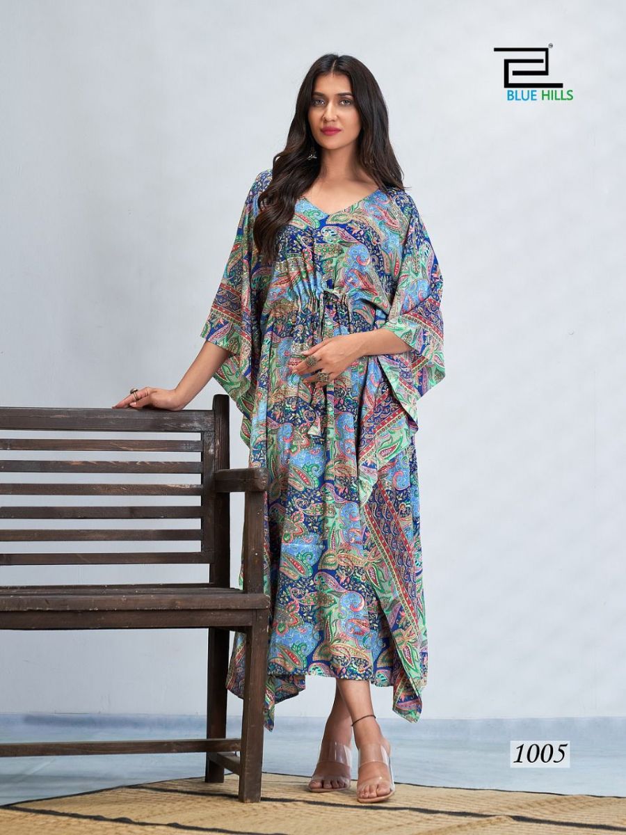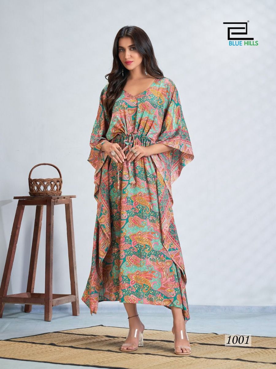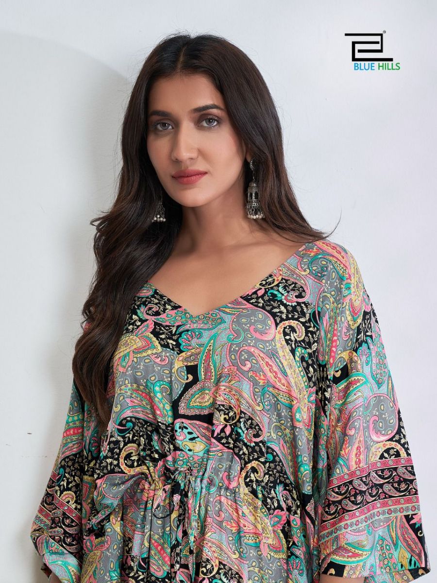 Fire Walk Kaftan By Blue Hills Designer With Printed French Crepe Kaftans Are Available At Wholesale Price