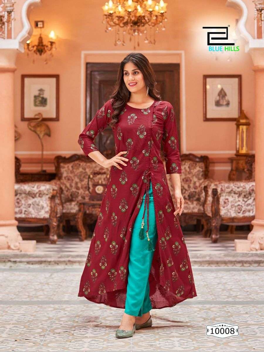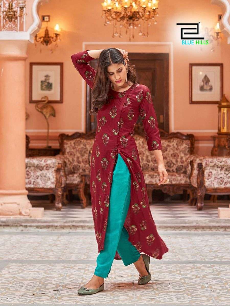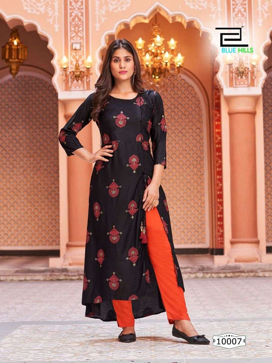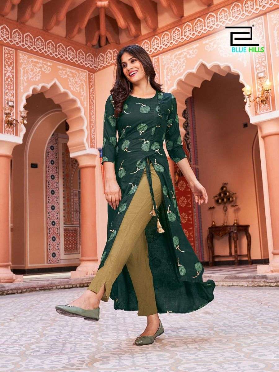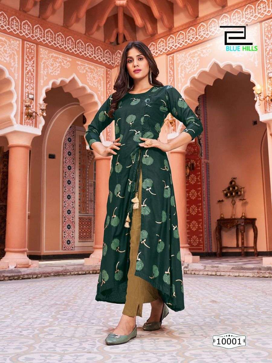 FIRST DATE VOL-10 KURTI BY BLUE HILLS DESIGNER WITH FOIL PRINTED RAYON KURTIS ARE AVAILABLE AT WHOLESALE PRICE