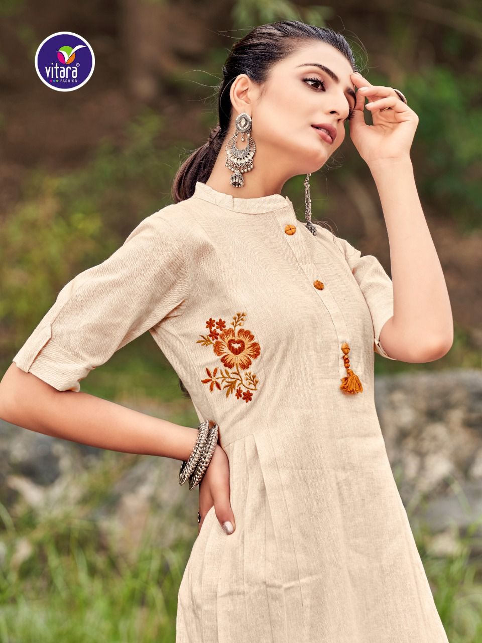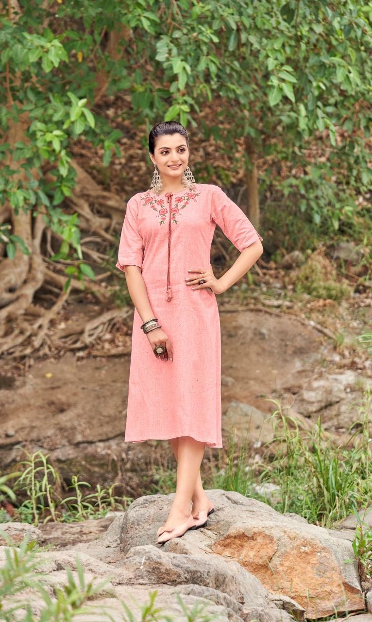 Floret Kurti By Viatara Designer With Embroidery Work Khadi Cotton Kurtis Are Available At Wholesale Price