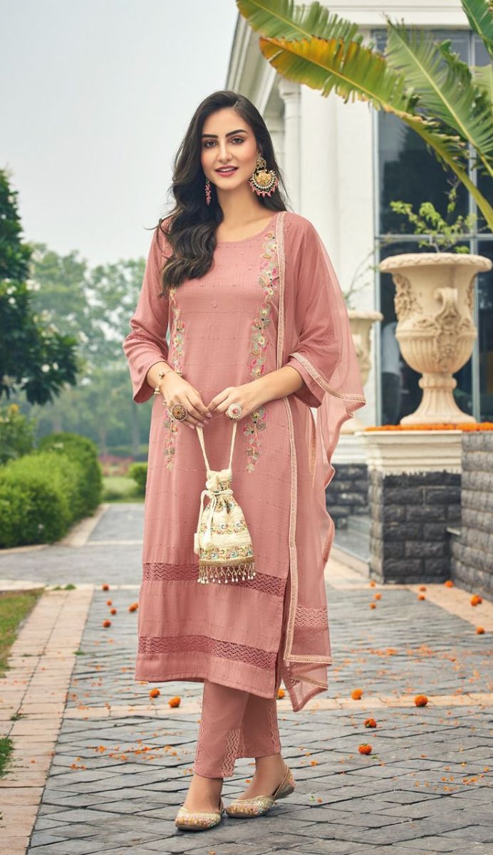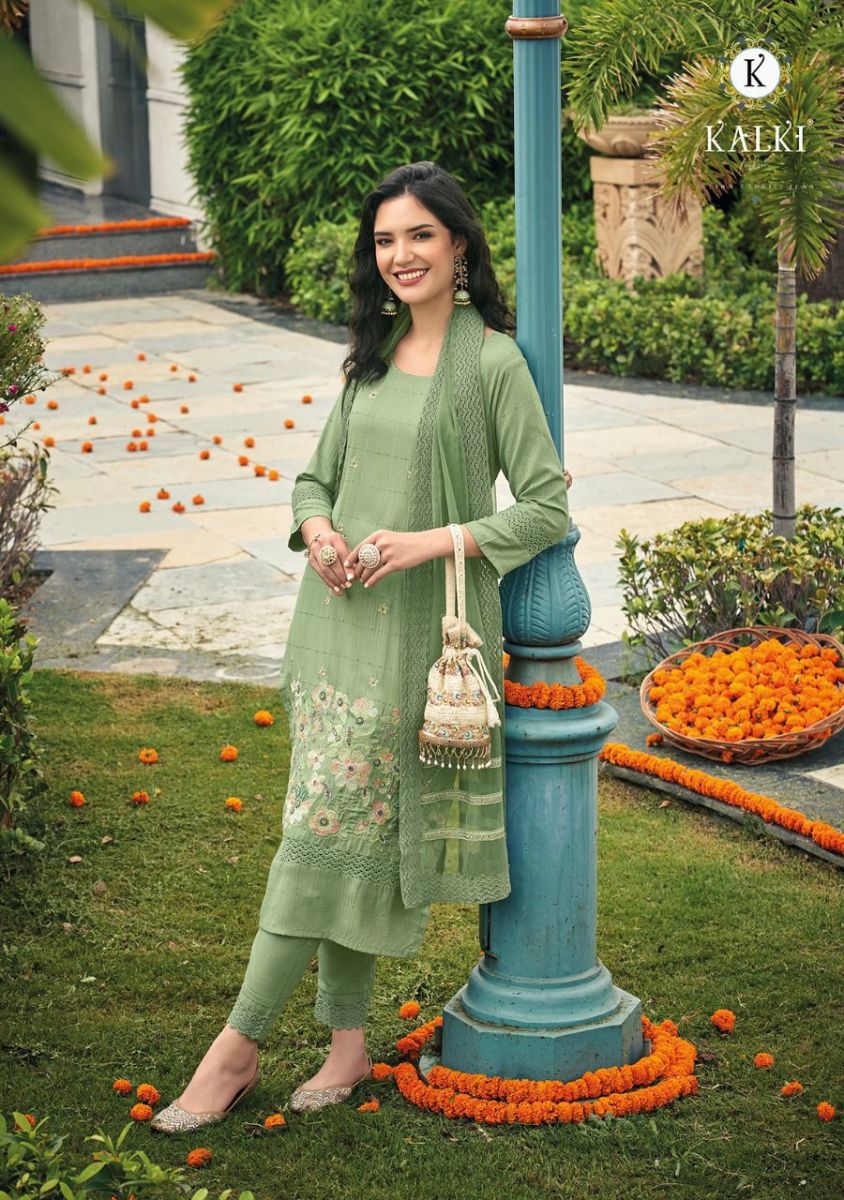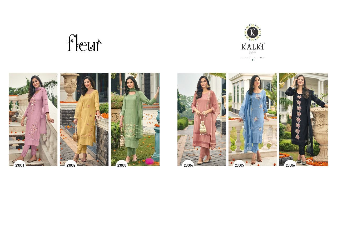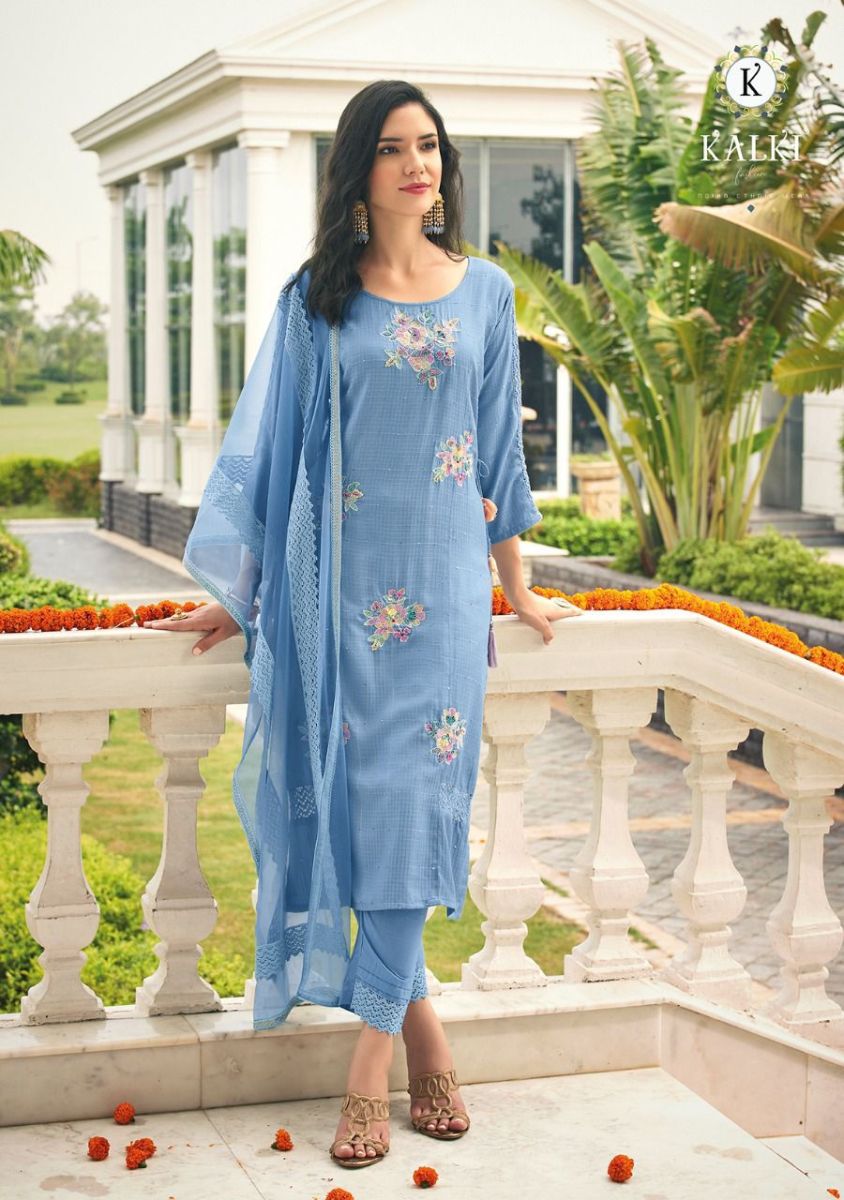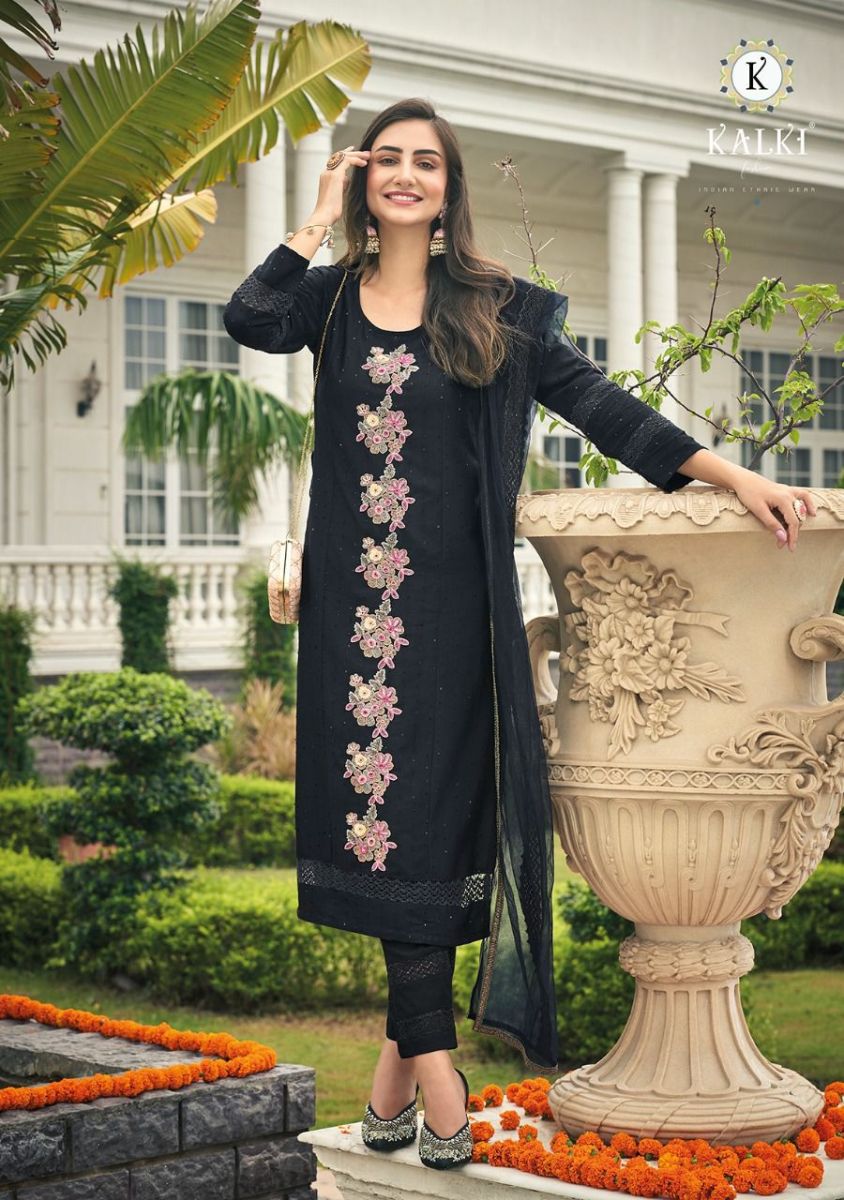 Fluer By Kalki Fashion Designer With Embroidery And Hand Work Viscose Top With Bottom And Dupatta Are Available At Wholesale Price