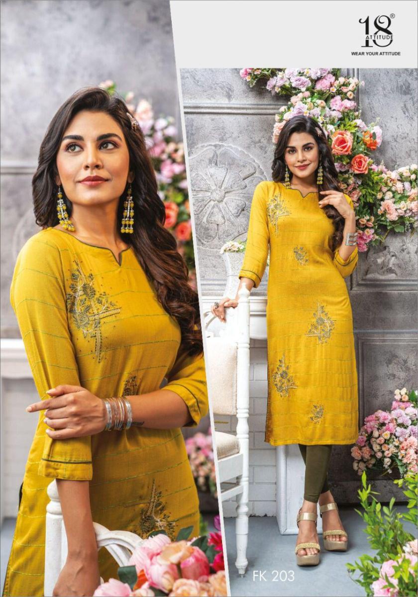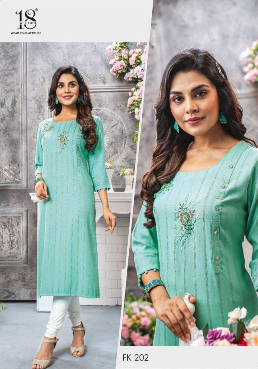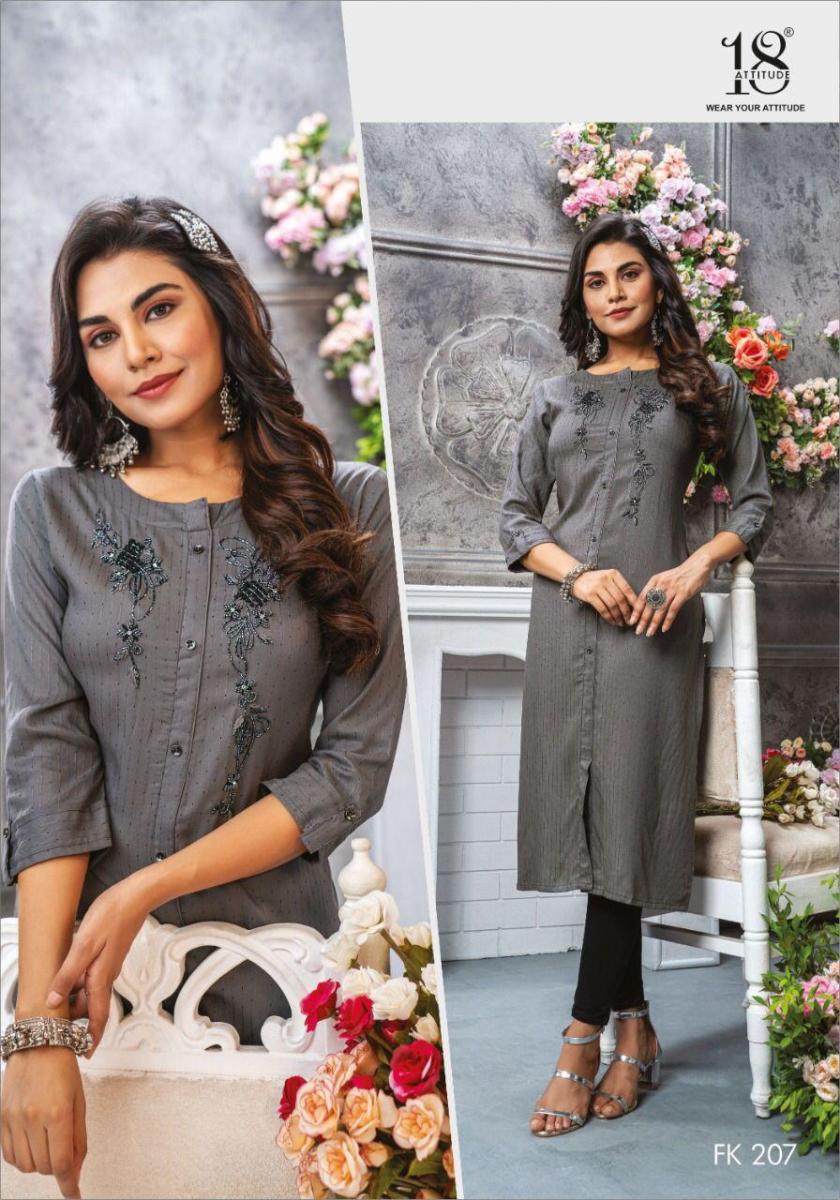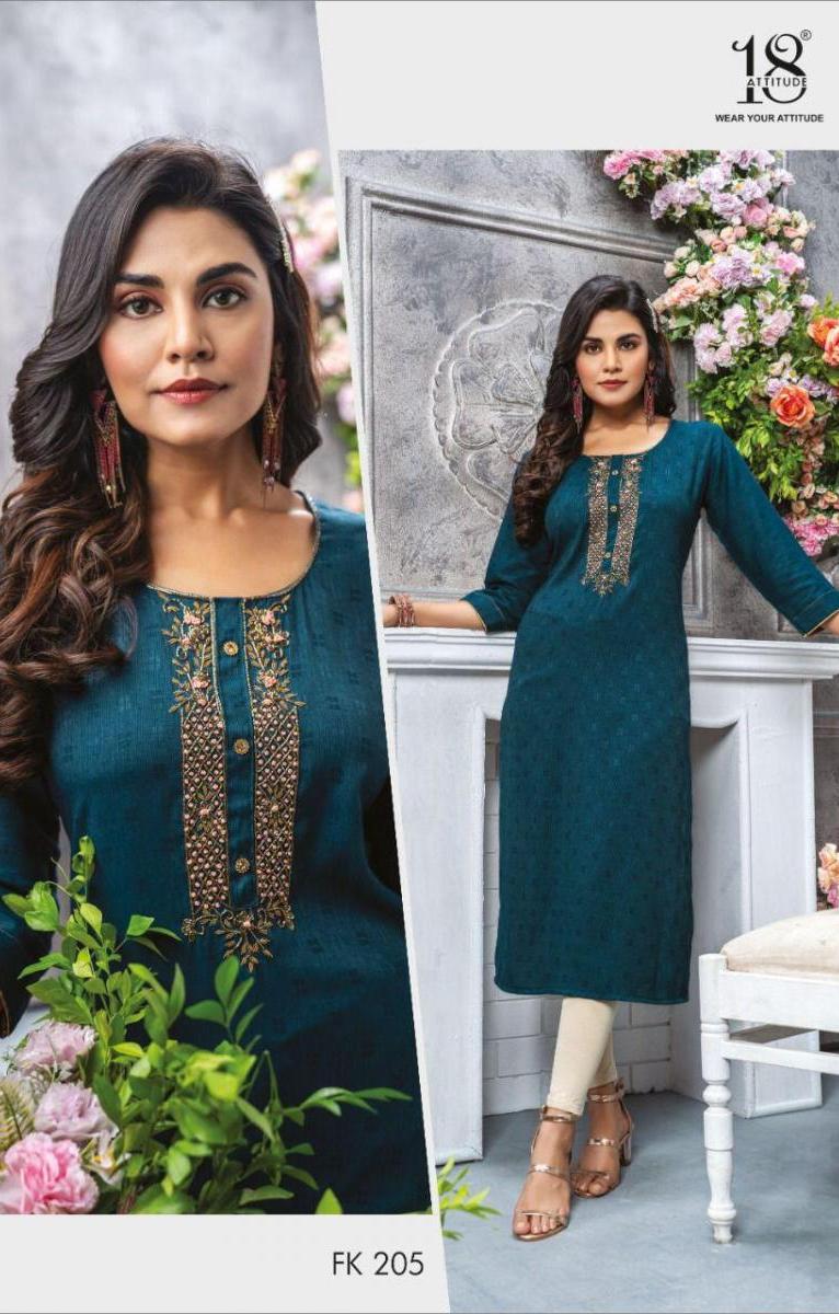 Forever Kurti By 18 Attitude Designer With Embroidery Work Rayon Kurtis Are Availabe At Wholesale Price