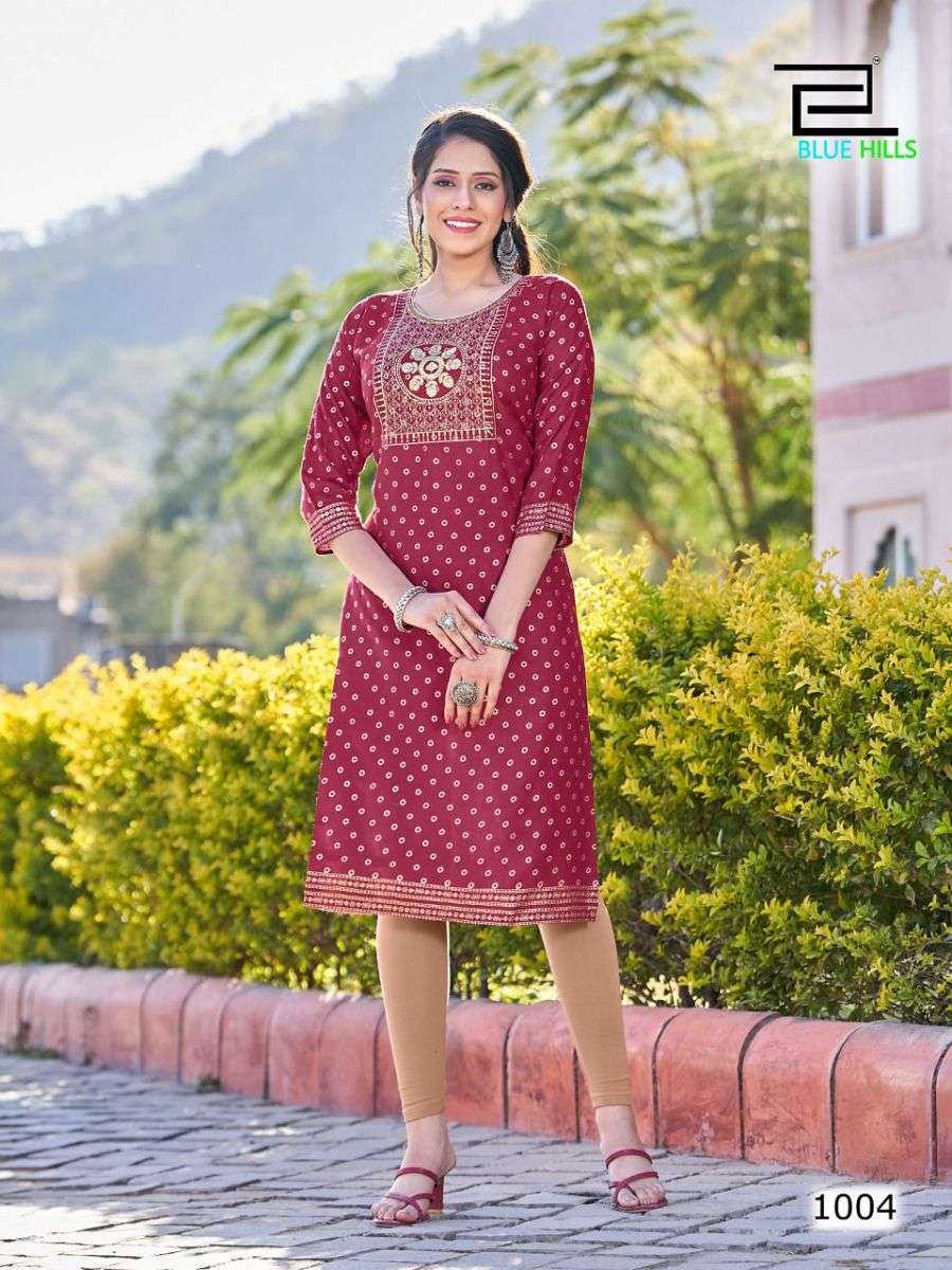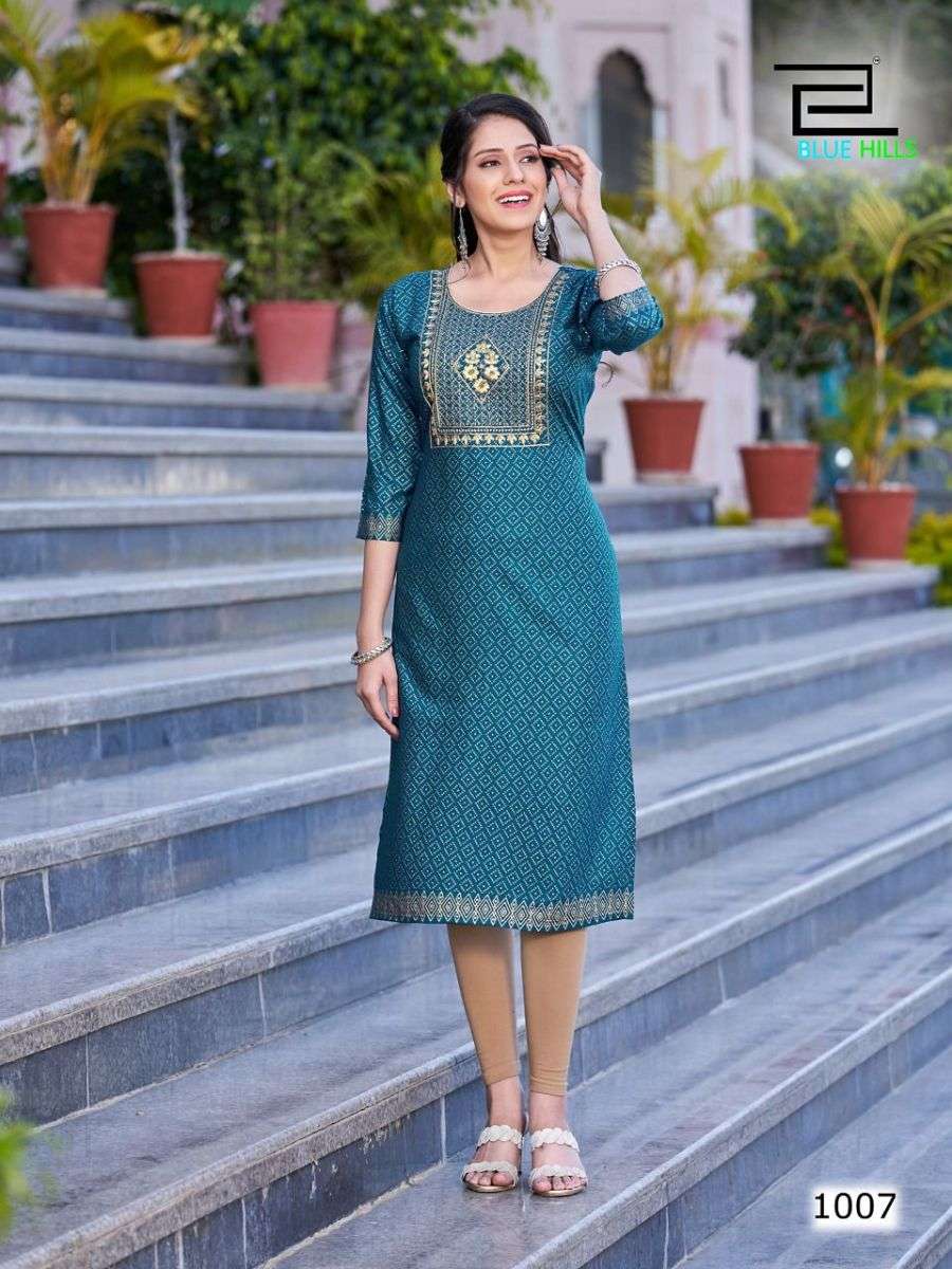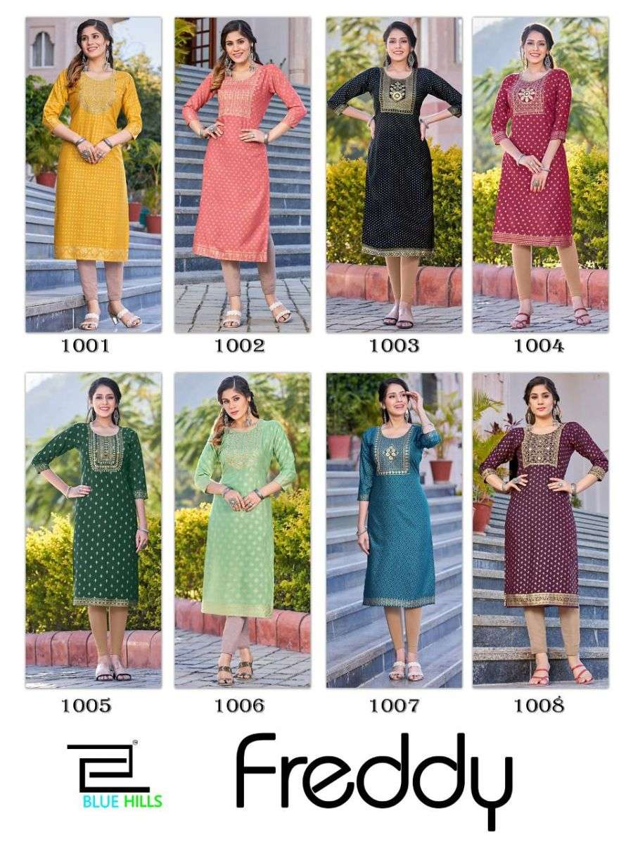 FREDDY KURTI BY BLUE HILLS DESIGNER WITH FOIL PRINTED RAYON KURTIS ARE AVAILABLE AT WHOLESALE PRICE