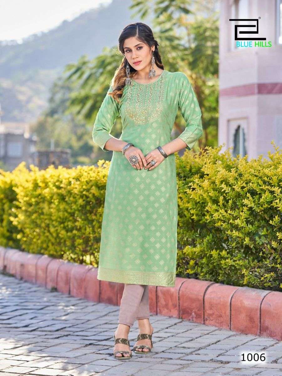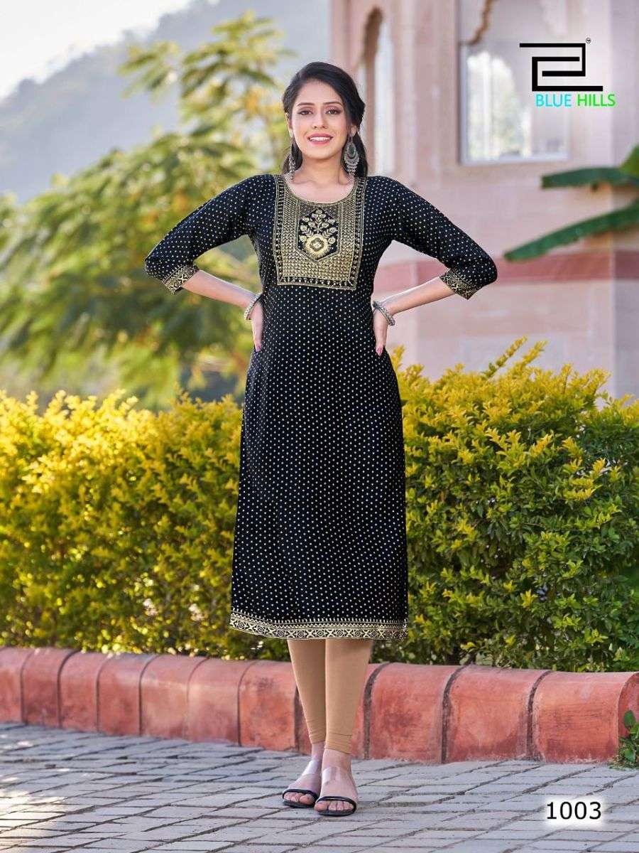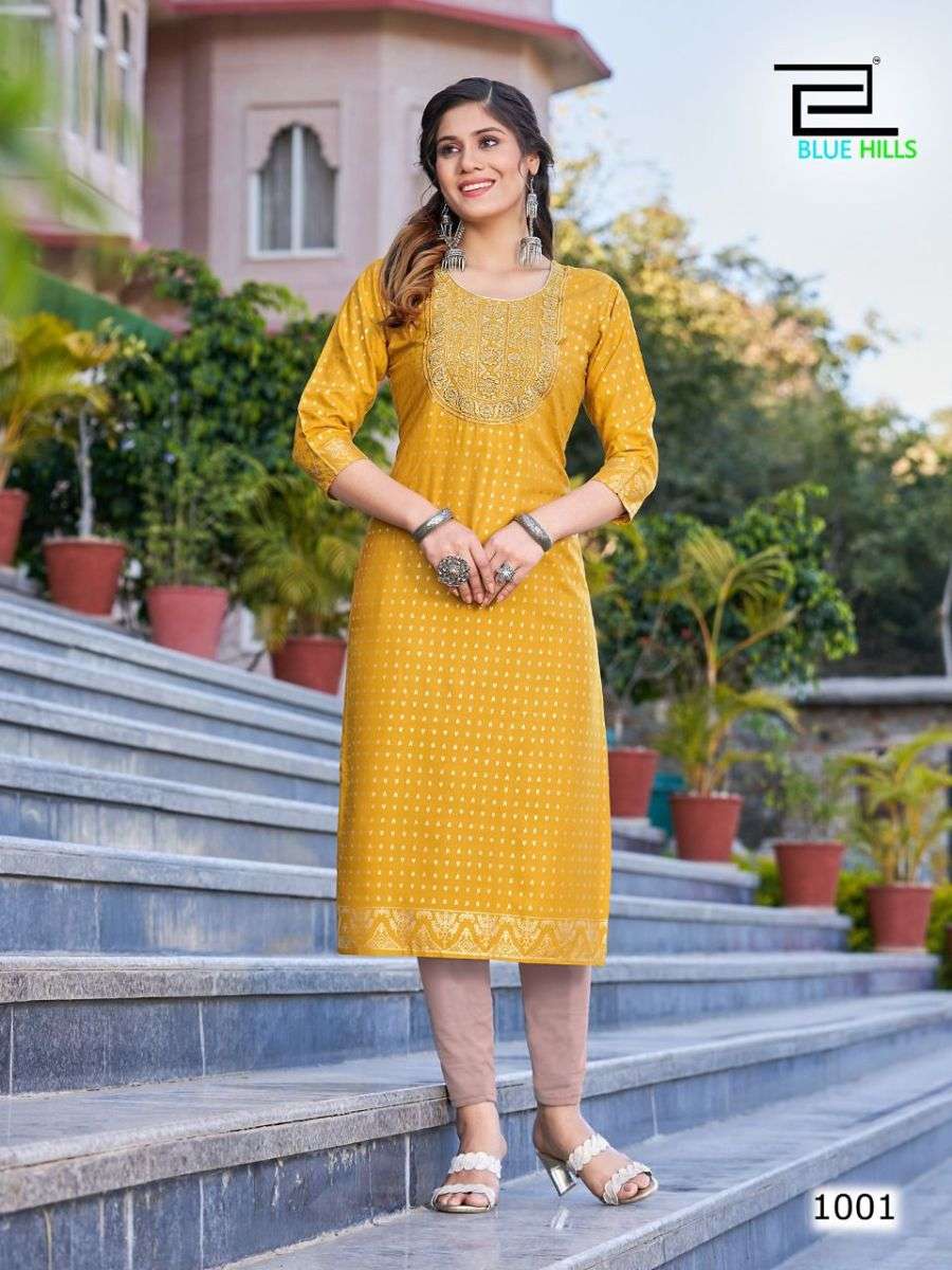 FREDDY KURTI BY BLUE HILLS DESIGNER WITH FOIL PRINTED RAYON KURTIS ARE AVAILABLE AT WHOLESALE PRICE