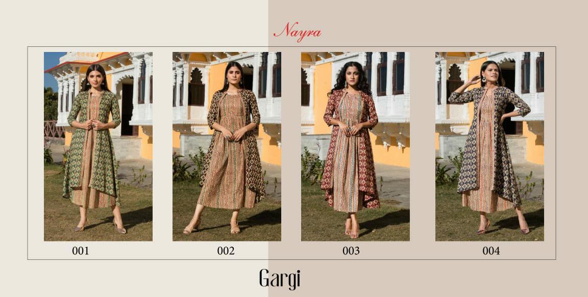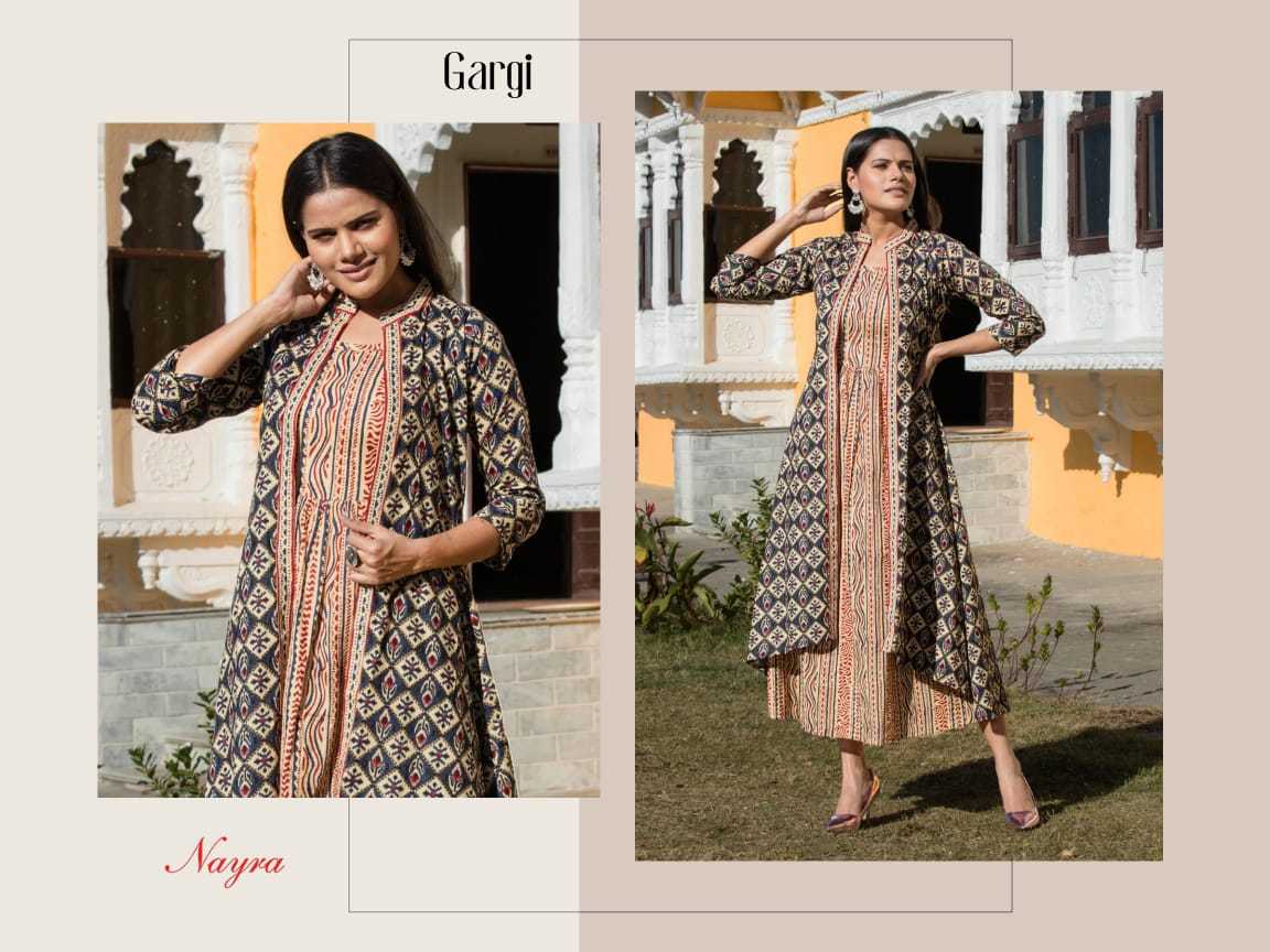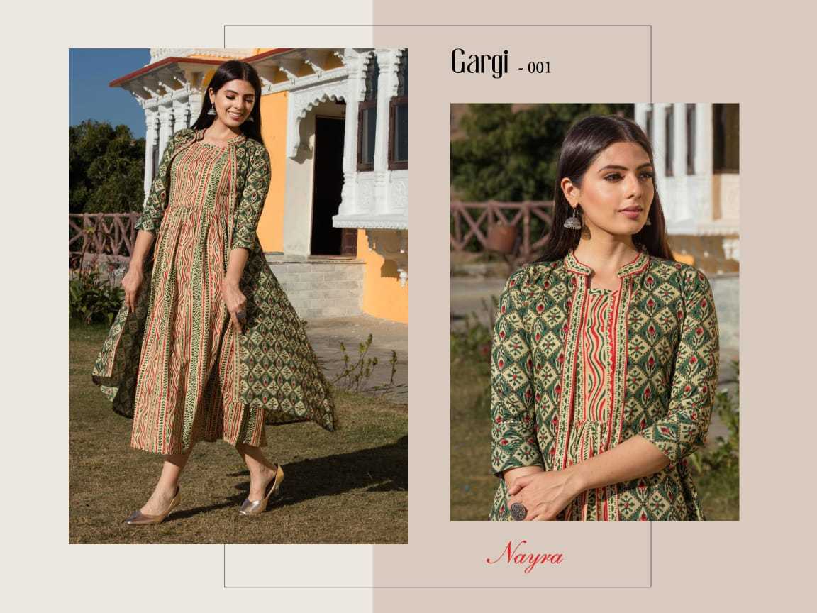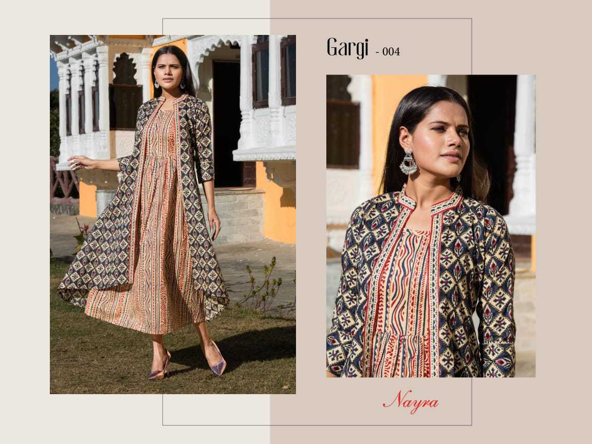 Gargi Kurti By Nayra Designer With Printed Cotton Kurti With Jacket Are Available At Wholesale Price