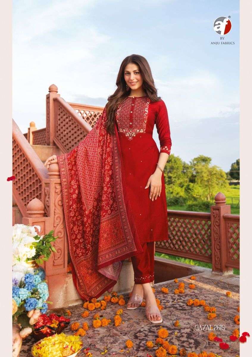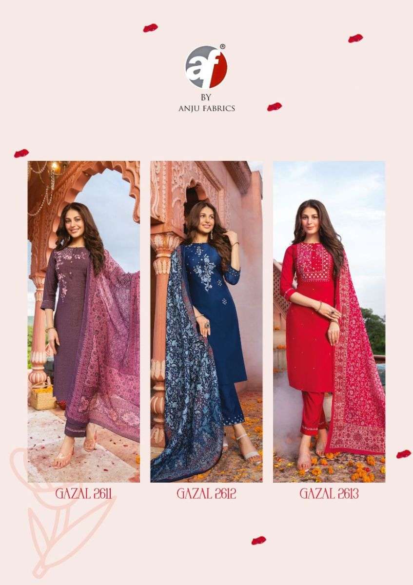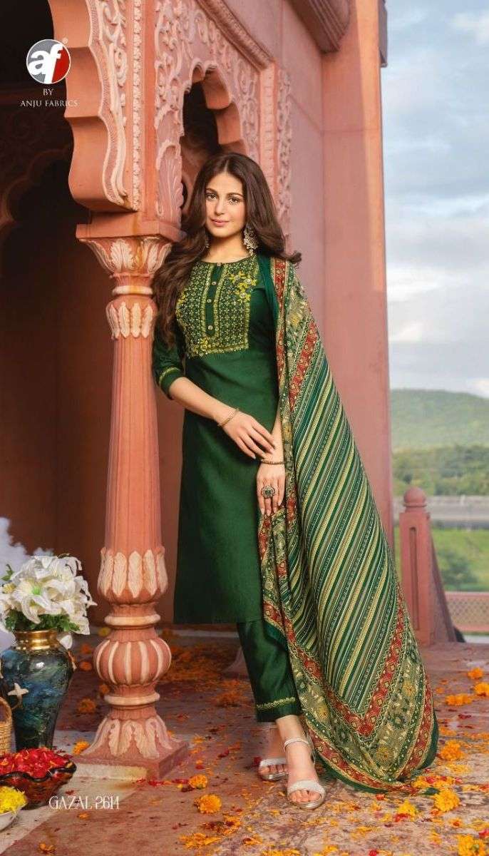 GAZAL BY ANJU FABRICS DESIGNER WITH KATHA WORK NAYLON VISCOSE KURTI WITH PANT AND DUPATTA ARE AVAILABLE AT WHOLESALE PRICE